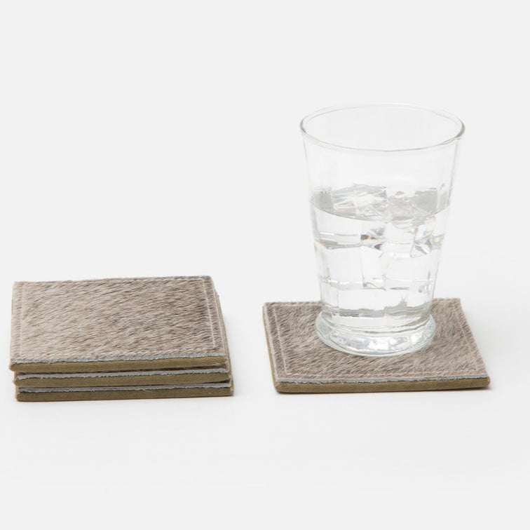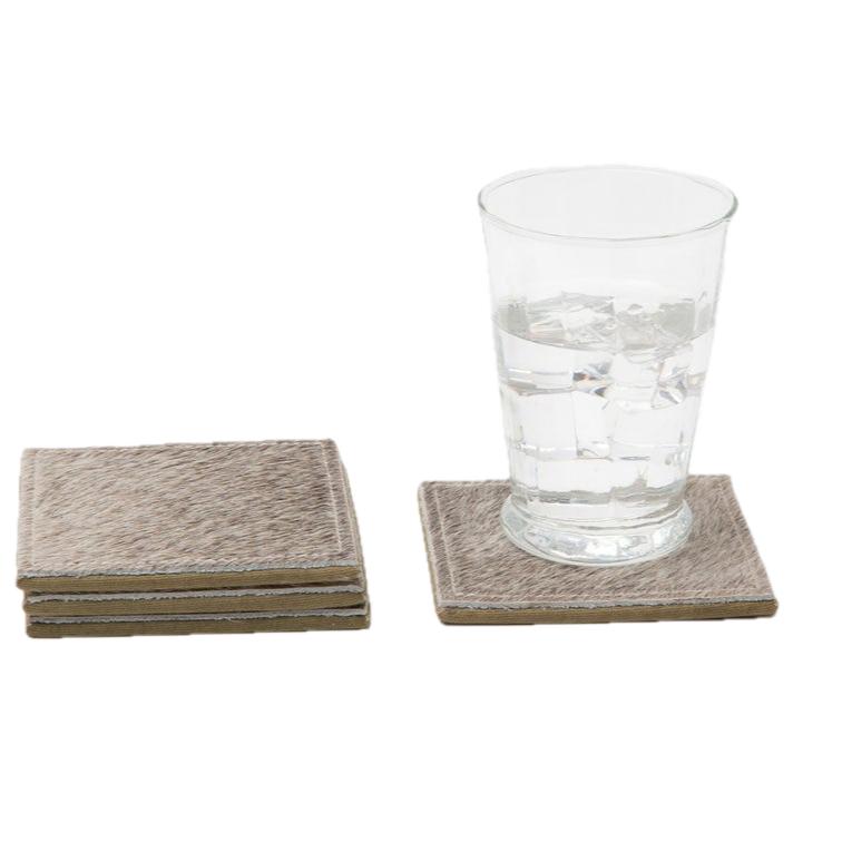 The texture and tailoring of the Tanner hair-on-hide coaster is a luxe detail for your next cocktail party.