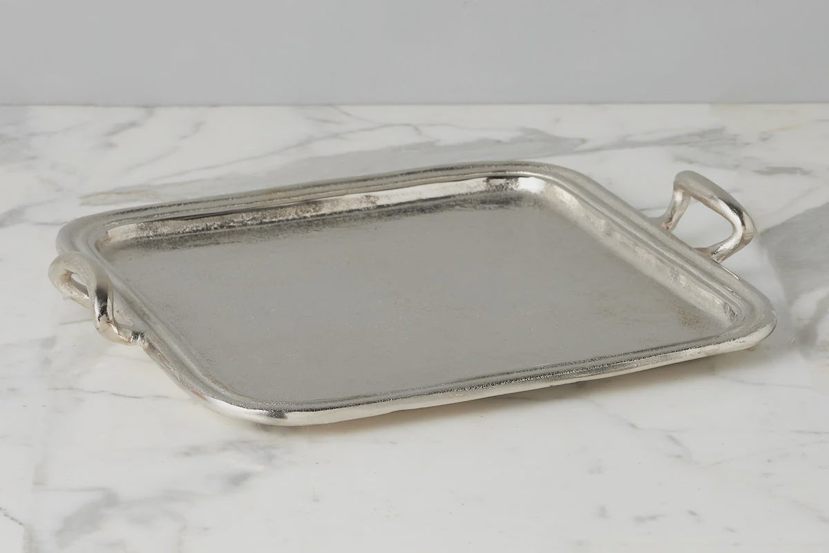 A luxe silver tray can elevate any space.
