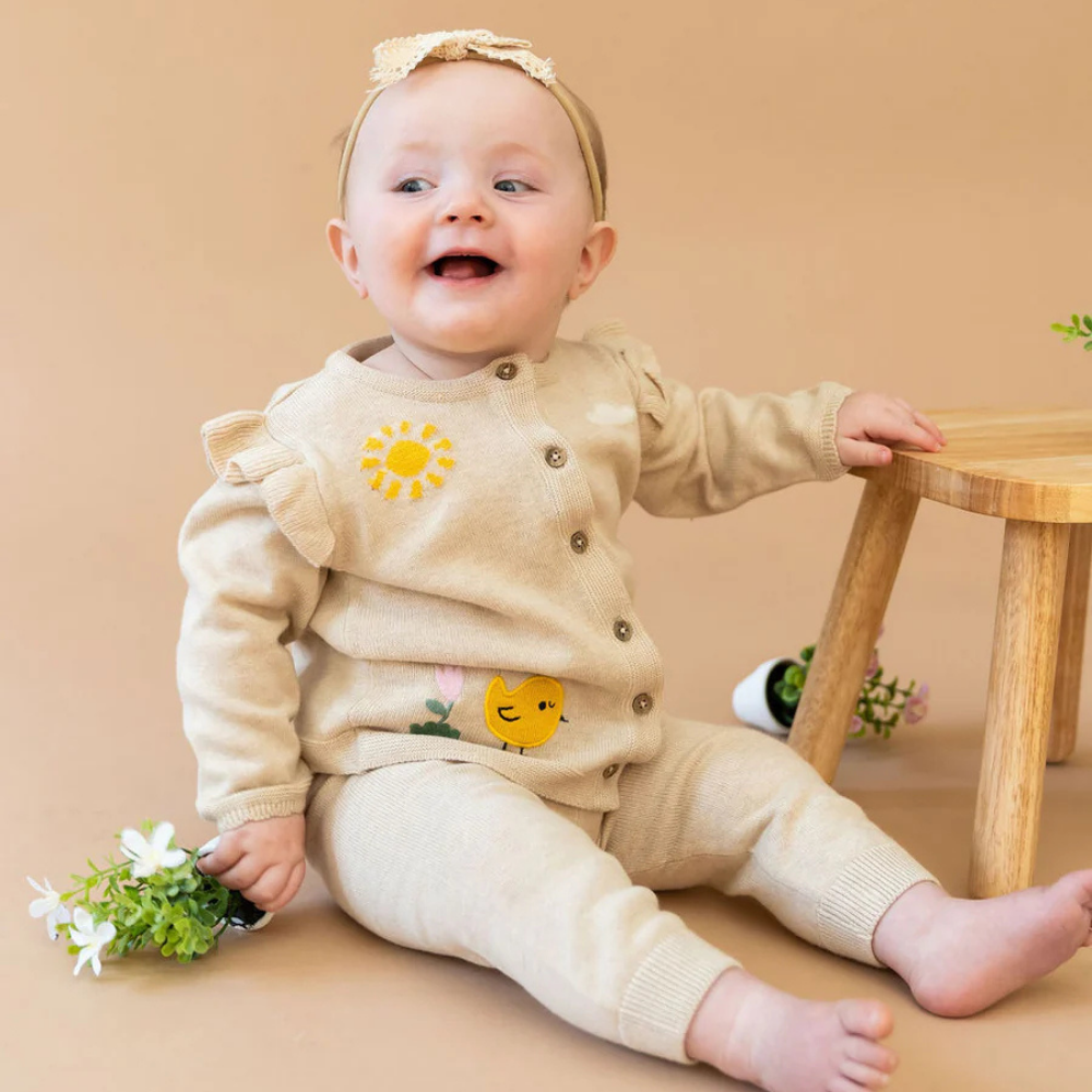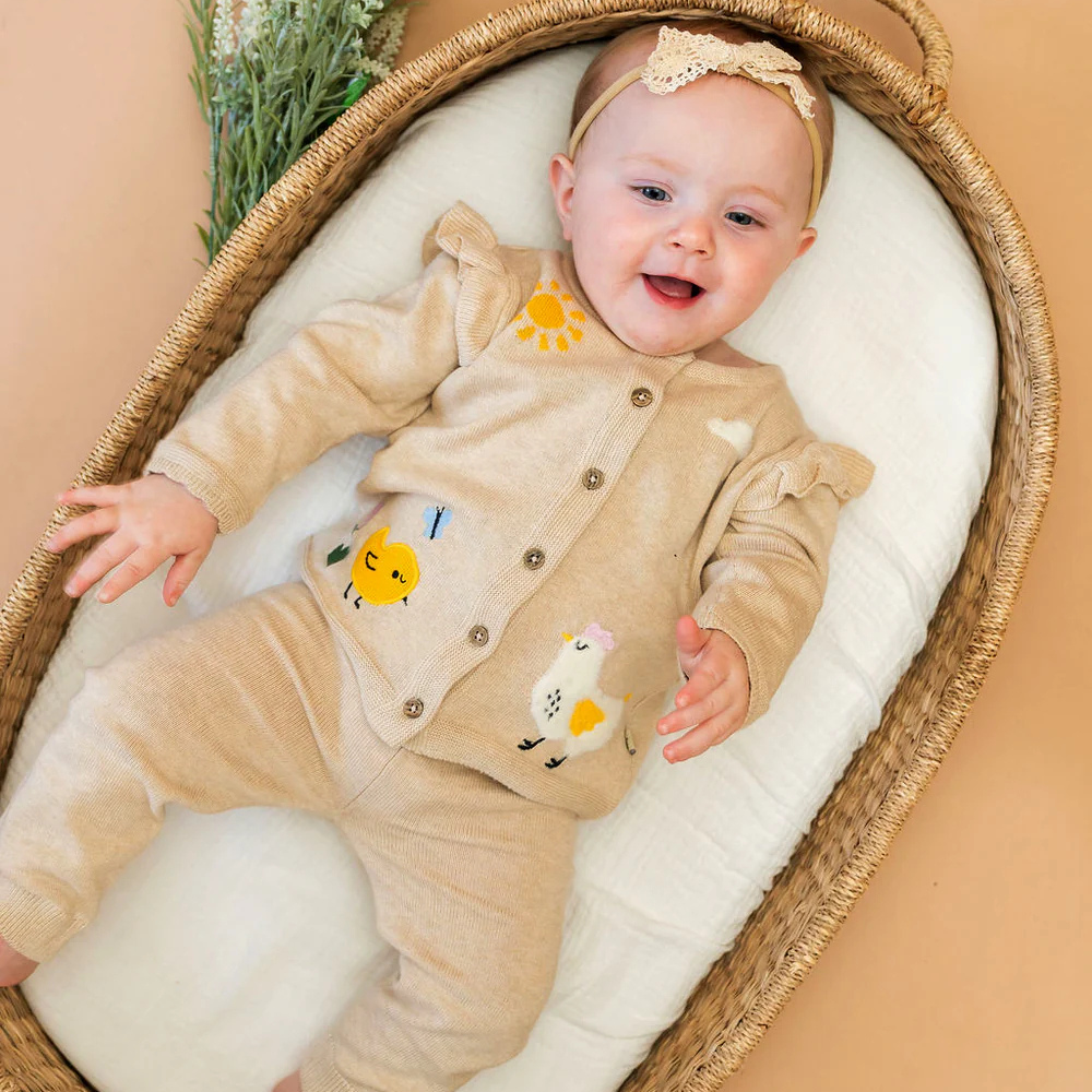 Chicken Little Embroidered Sweater Knit Baby Cardigan (Organic Cotton)