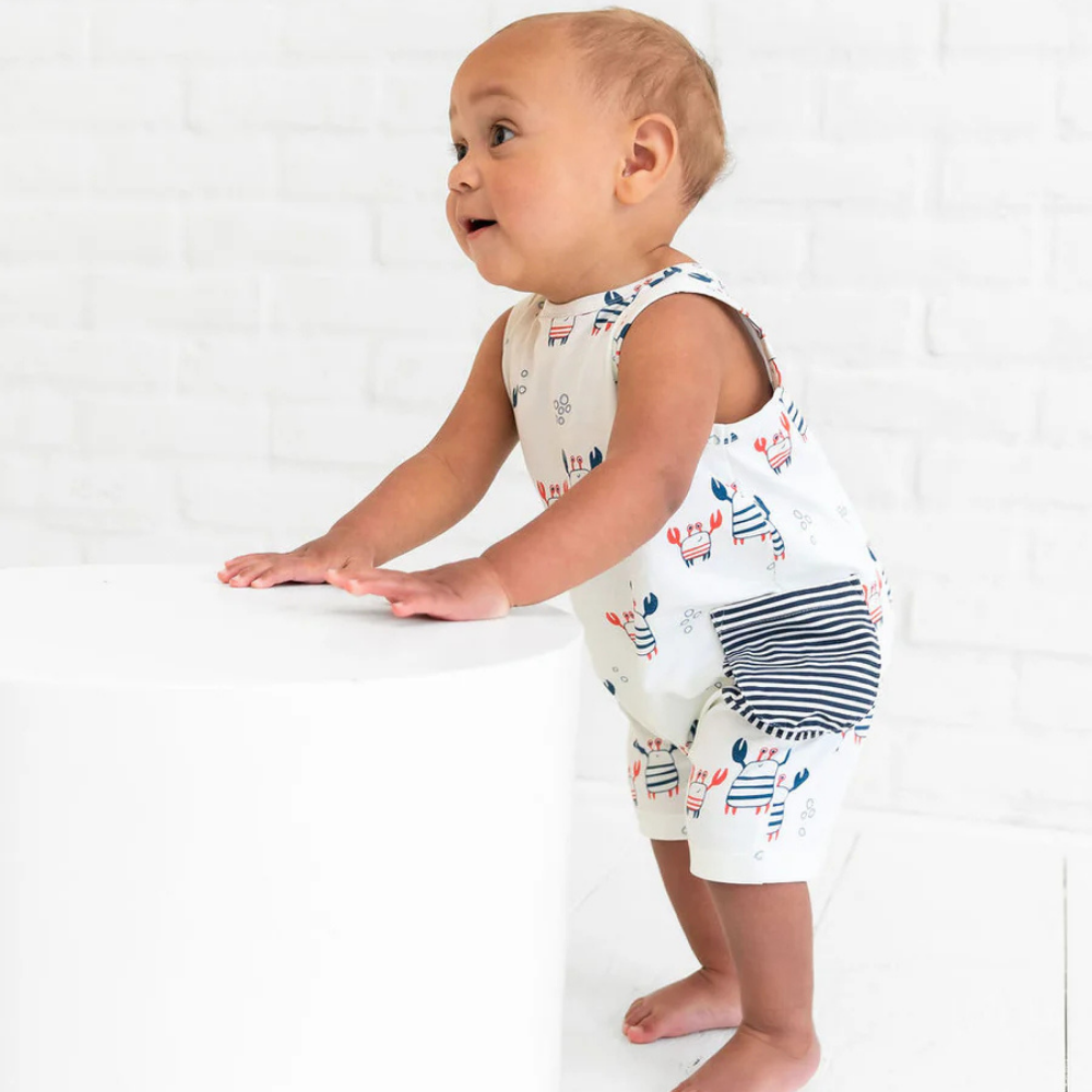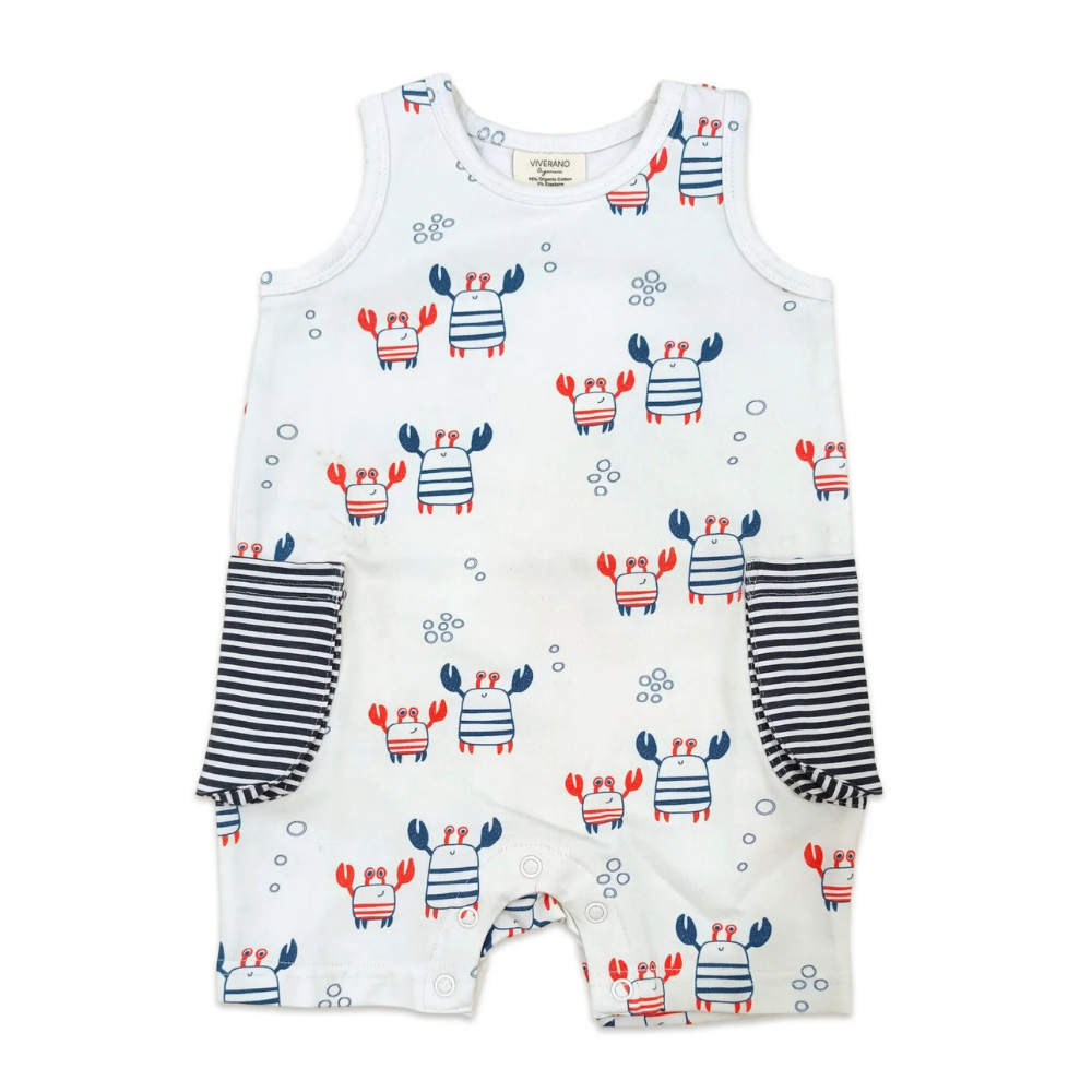 Nautical Crab Side Pocket Short Baby Romper (Organic Jersey)