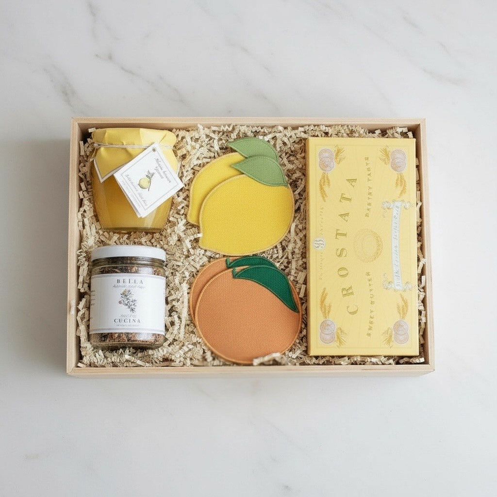 A Sweet Treat is a bright, feel good collection made for savoring life’s little moments. Thoughtfully curated with citrusy accents and delicate sweets, this box is perfect for afternoon tea, weekend brunch, or a simple dessert moment. Fresh, cheerful, and effortlessly charming, it makes a lovely gift for hosts, thank yous, or anyone who appreciates a touch of sweetness.