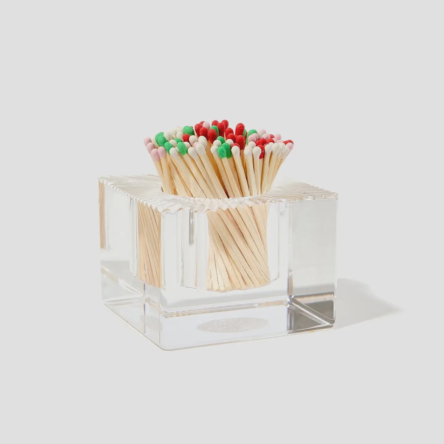 Add this acrylic match strike to your coffee table, dining room, desk, or any space that could use a little flair and occasionally need a match. It features a strike pad on the bottom and comes with 140 colorful holiday matches.