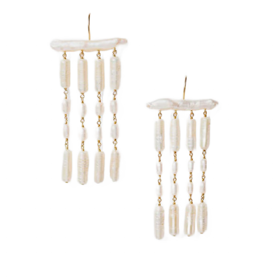 These statement drop earrings from Chan Luu feature four tiers of shimmering biwa stick pearls and are finished on gold French hooks. Long and dangly, they look fabulous with a simple white blouse or little black dress.