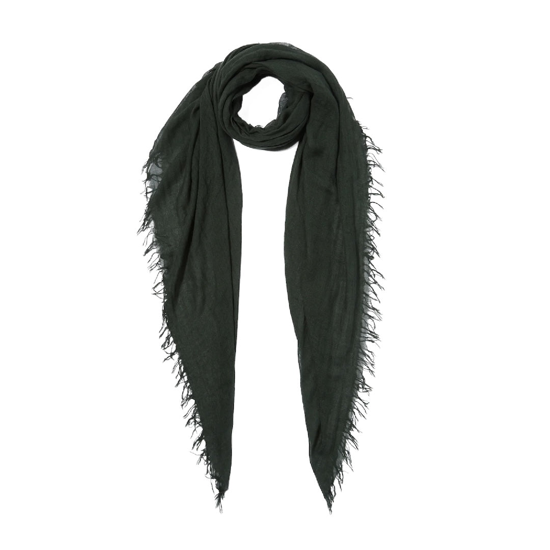 Made from Chan Luu's signature blend of cashmere and silk, this scarf sports a green hue and subtle fringe trim. It is super soft and lightweight, making it great for use all year.