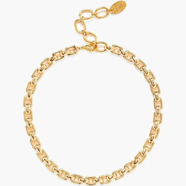 Chan Luu designed this gold puffy square chain link necklace to be worn layered with other pieces or styled solo. Either way, the look is of-the-moment.