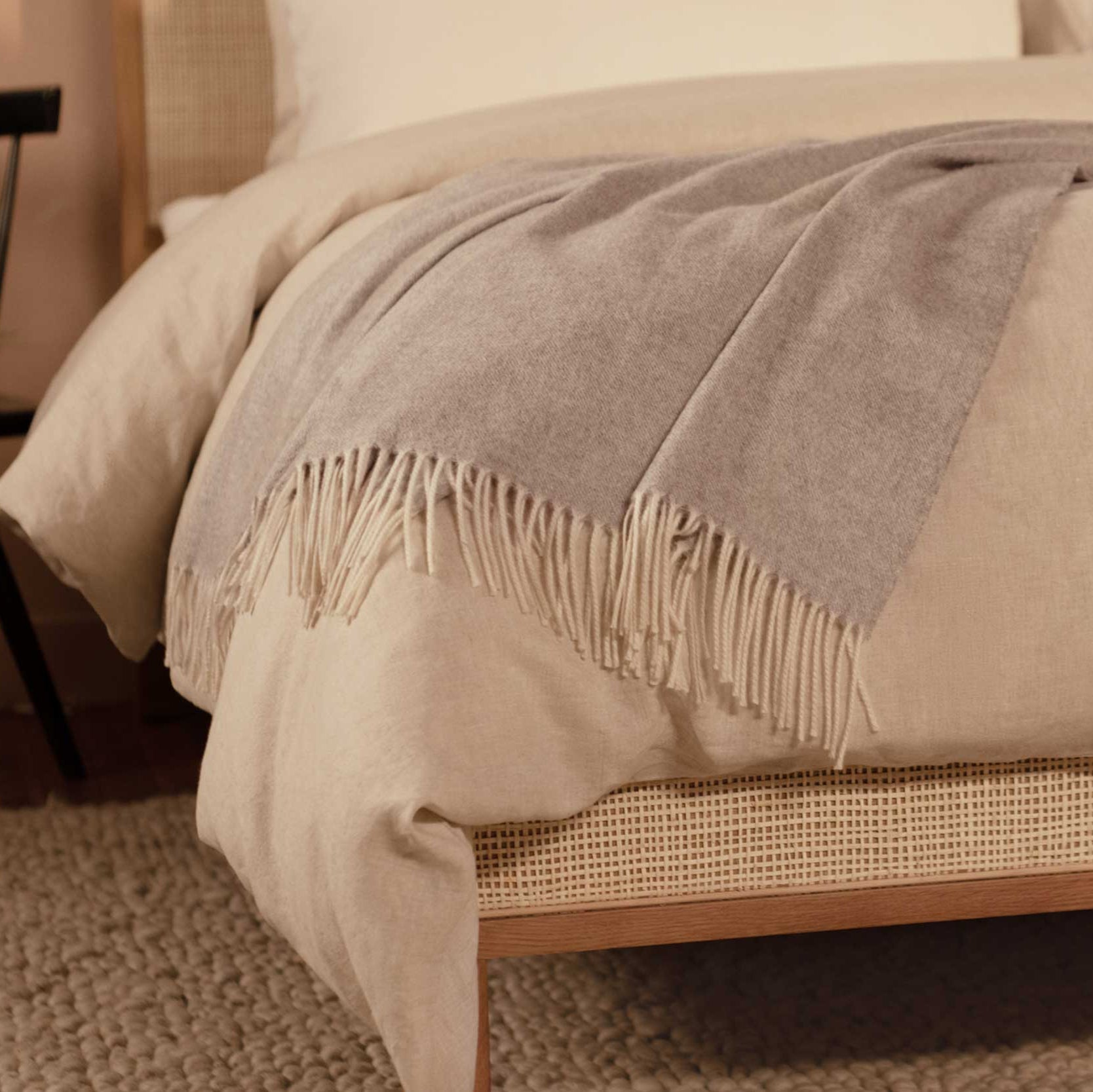 The LETTO Coccola is a 100% cashmere woven throw blanket finished with a classic thistle brush technique for ultimate luster and softness.