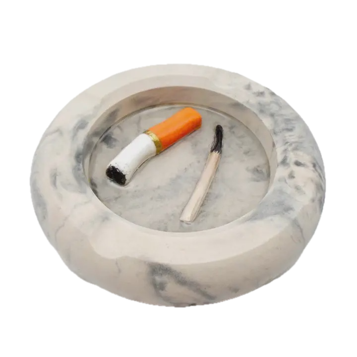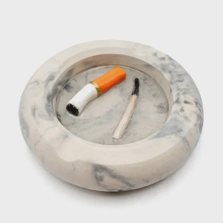 Featuring a cigarette butt with real ashes and a burnt matchstick, this functional ashtray is a modern work of art for the coffee table. Each piece is hand made so there may be slight variations in color and size.