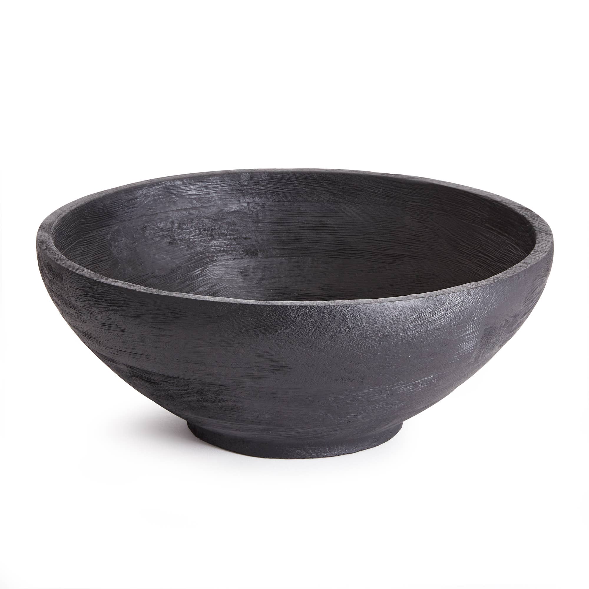 Made of a solid mango wood and stained a dramatic deep black, the Nox salad bowl is handcrafted in India from artisans for an elevated serving vessel on your dining table.