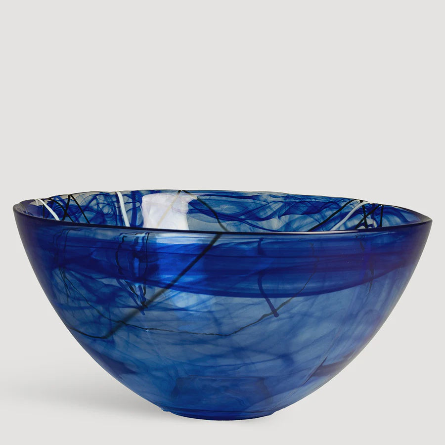 Contrast from Kosta Boda is made using a technique called centrifuging. This technique creates veils of color within the glass, and vibrant glass canes are added during the process, making each product unique. The large bowl, designed by Anna Ehrner, is beautiful on its own or as a fruit bowl.