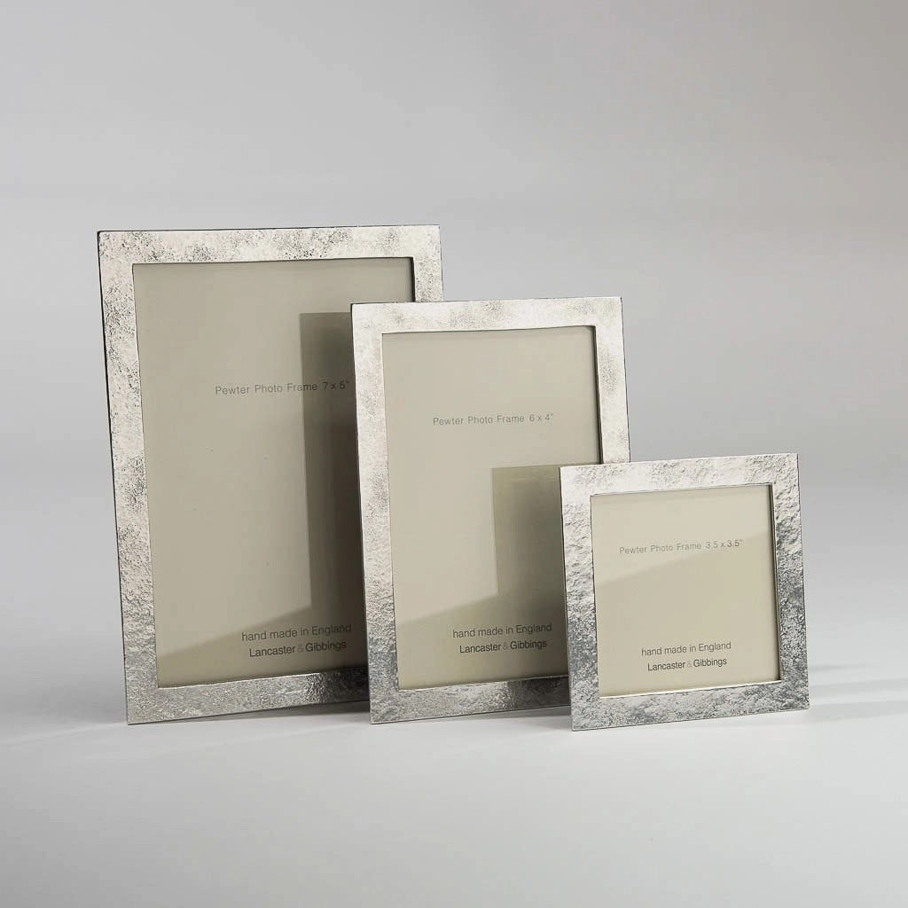 Handmade cast pewter photo frame. A simple profile reminiscent of the gentle texture of sandstone. By using a narrow profile, this design has a more classic proportion. This photo frame can be displayed either portrait or landscape.