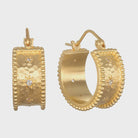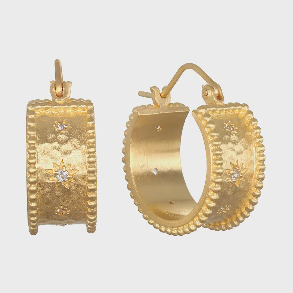 Designed like a small cuff and details with delicate white topaz stars, the stones of these click-it hoop earrings remind us of our individuality and creativity while the star images represent guidance, inspiration and dreams. Wear them as a symbol of strength and an uplifting reminder that the future is a wold of possibility.