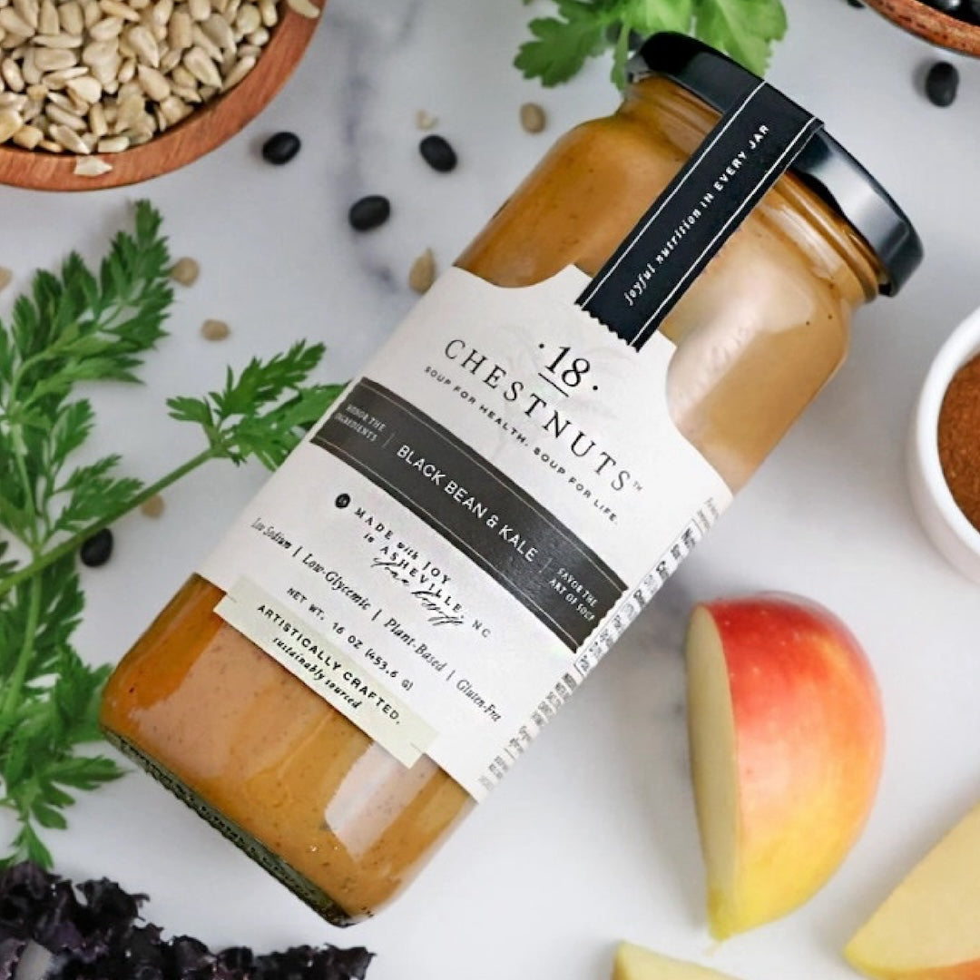 Asheville, NC-based brand 18 Chestnuts Soups works with local farmers to create housemade soups packed with nutrients and brimming with fresh vegetables and other sustainable ingredients. Founder Ilona Kossof is a former lawyer who left a corporate real estate company she owned with her husband to attend a prestigious nutrition program at Cornell Unviersity, and developed the idea for 18 Chestnuts Soups from there. The company's earth-friendly practices include using glass jars for easy recycling and composting any waste that occurs during the cooking process. To boot, they give back by helping educate children about the importance of healthy eating and donating a portion of the profits to charity.