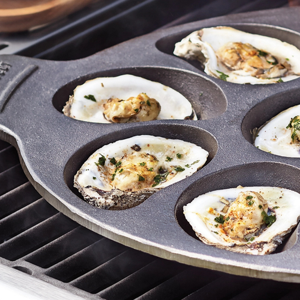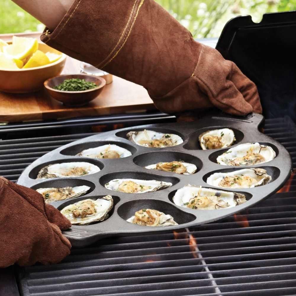 Outset Cast Iron Oyster Grill Pan, 12 Cavities