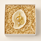 A delicate and elegant gift inspired by the sea. Featuring gold filled charms, a rolo chain, and a ceramic oyster shell dish, this set is perfect for displaying or wearing coastal keepsakes with style.