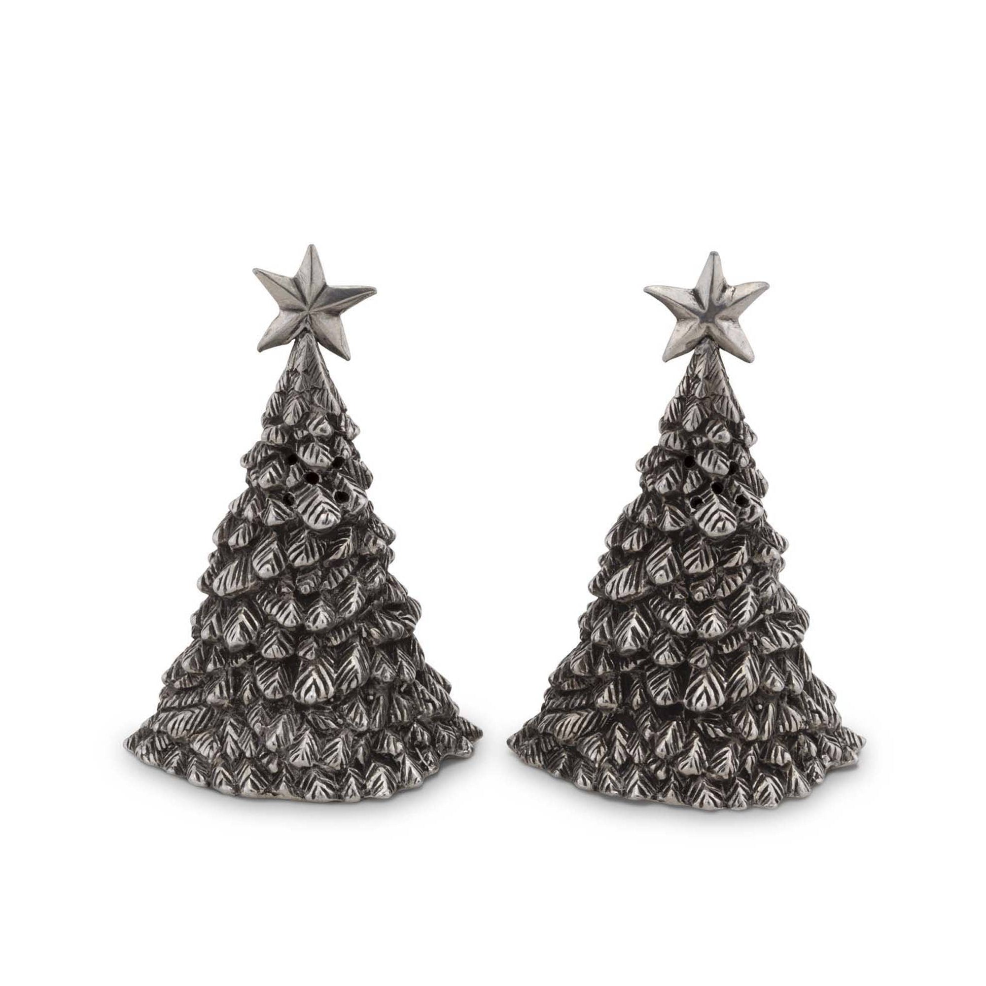 Fuel the holiday spirit by decorating your table with Vagabond House’s Christmas tree salt and pepper shaker set. These pure-pewter evergreens topped with stars feature multiple layers of branches and needles. The remarkable craftsmanship in these pieces give them a rough, realistic texture.
