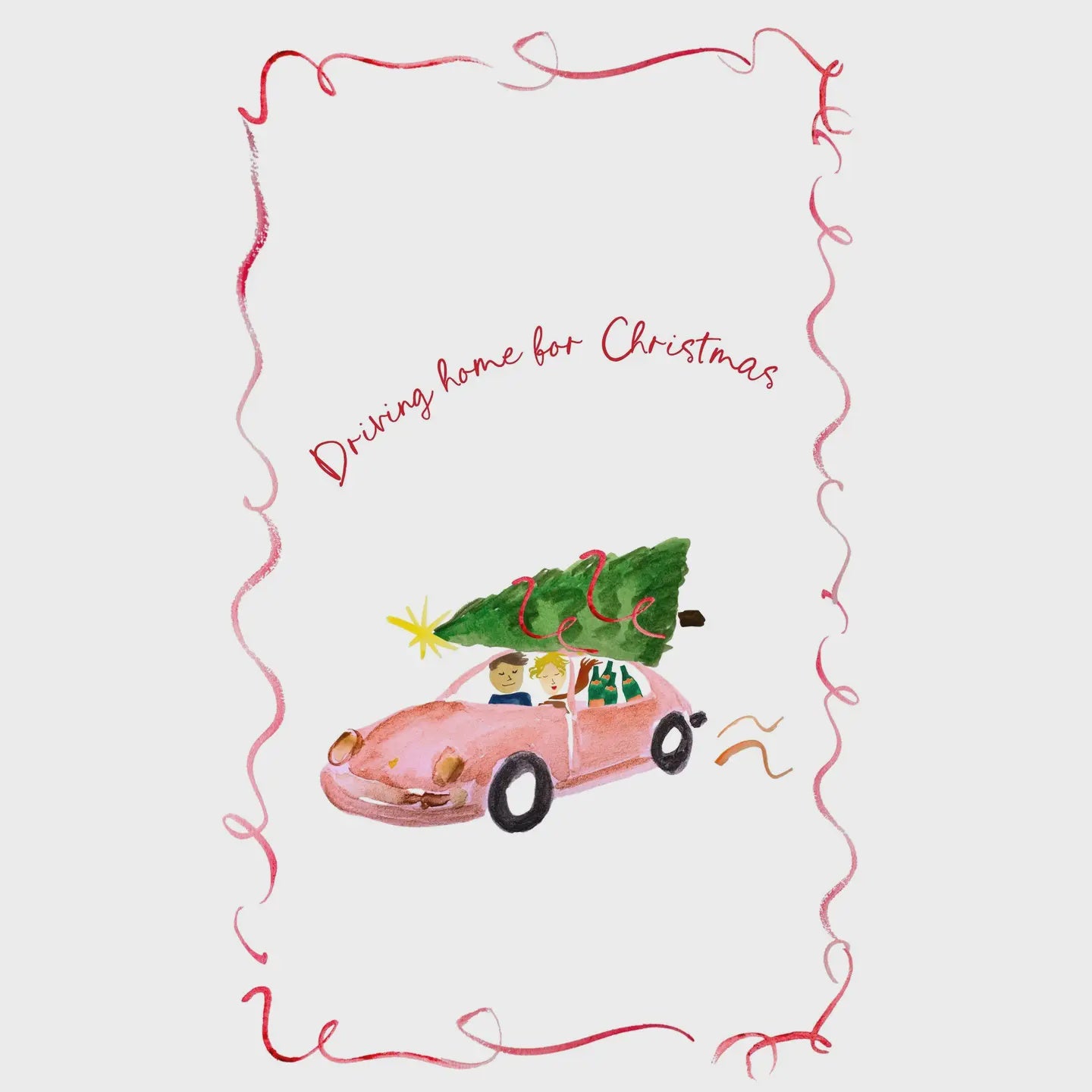 Driving home for Christmas never looked so chic. This linen tea towel features a vintage Porsche packed with holiday essentials (yes — Champagne in the back!). Made in Europe from premium stonewashed linen, it offers a beautifully soft hand feel and the natural antibacterial benefits linen is known for — perfect for festive tableware.