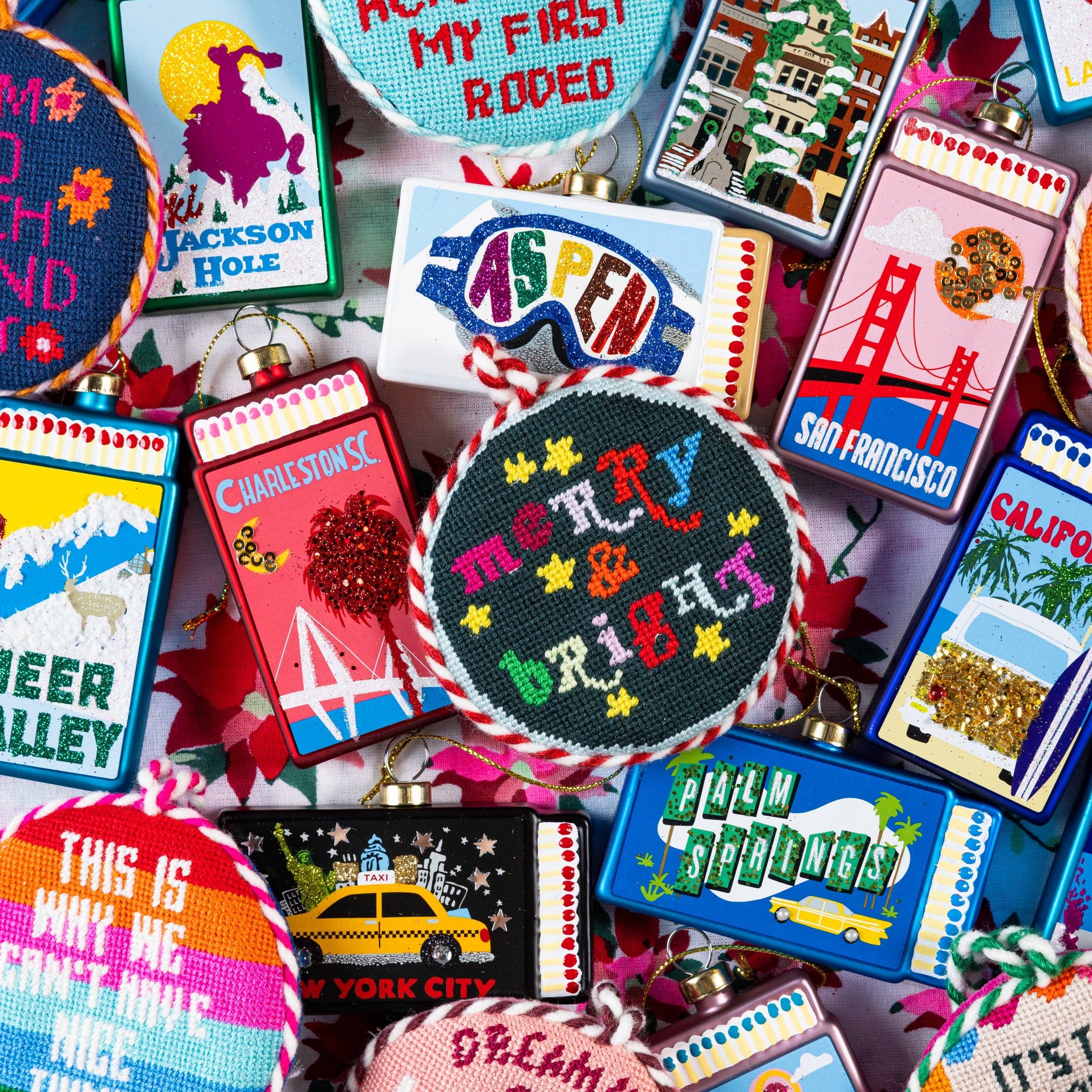 Make your holidays be merry and bright with this cheeky needlepoint ornament on the tree. Backed in luxe velvet, Furbish has revived this Southern staple with sayings that are sure to get a smile. Take your holiday decor from trad to rad with Furbish's curated assortment of festive needlepoint pillows, ornaments, tree toppers, stockings, and tree skirts.