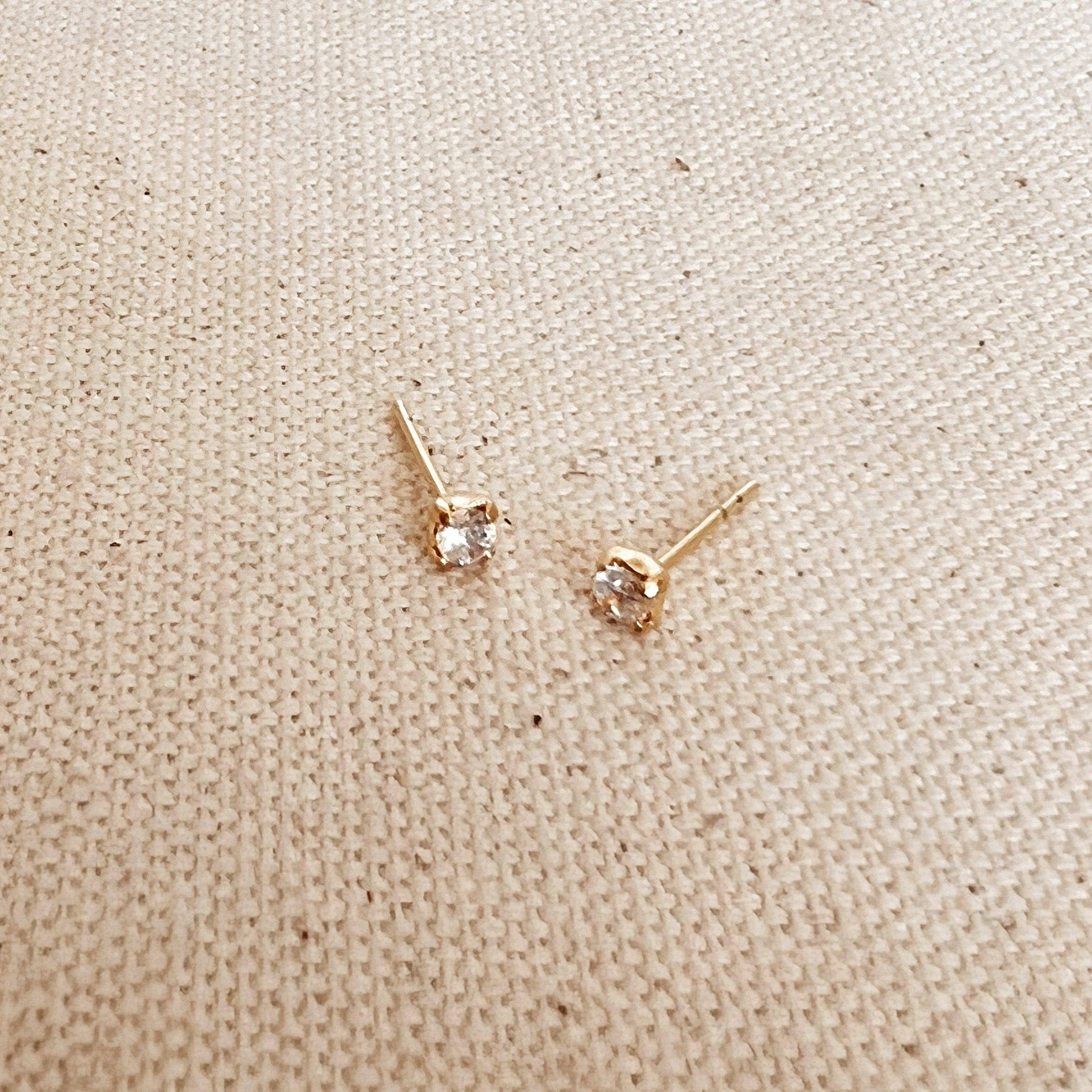 This dainty minimalist 18k gold-filled stud features a high quality 2 mm cubic zircon stone. It's high end look adds a touch of luxury to any outfit.