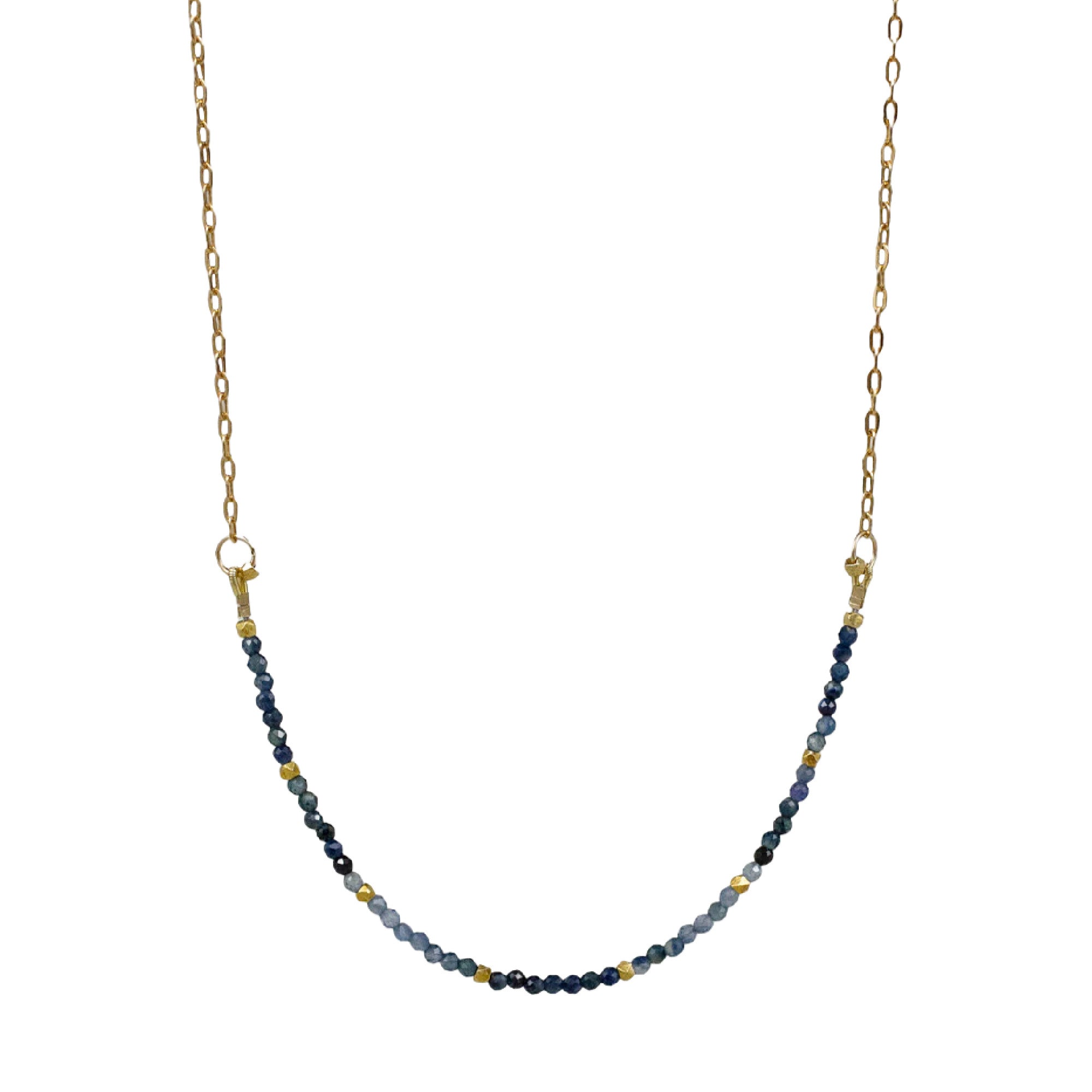 The Bryn necklace is the ultimate layering accessory. Featuring faceted gemstones interspersed with gold vermeil accents on a drawn cable chain, it's a casual, charming complement to your favorite gold jewelry.