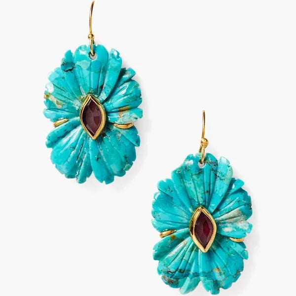 This drop earring from Chan Luu features a hand-cut turquoise flower with an inset garnet marquise. It's a true statement piece.