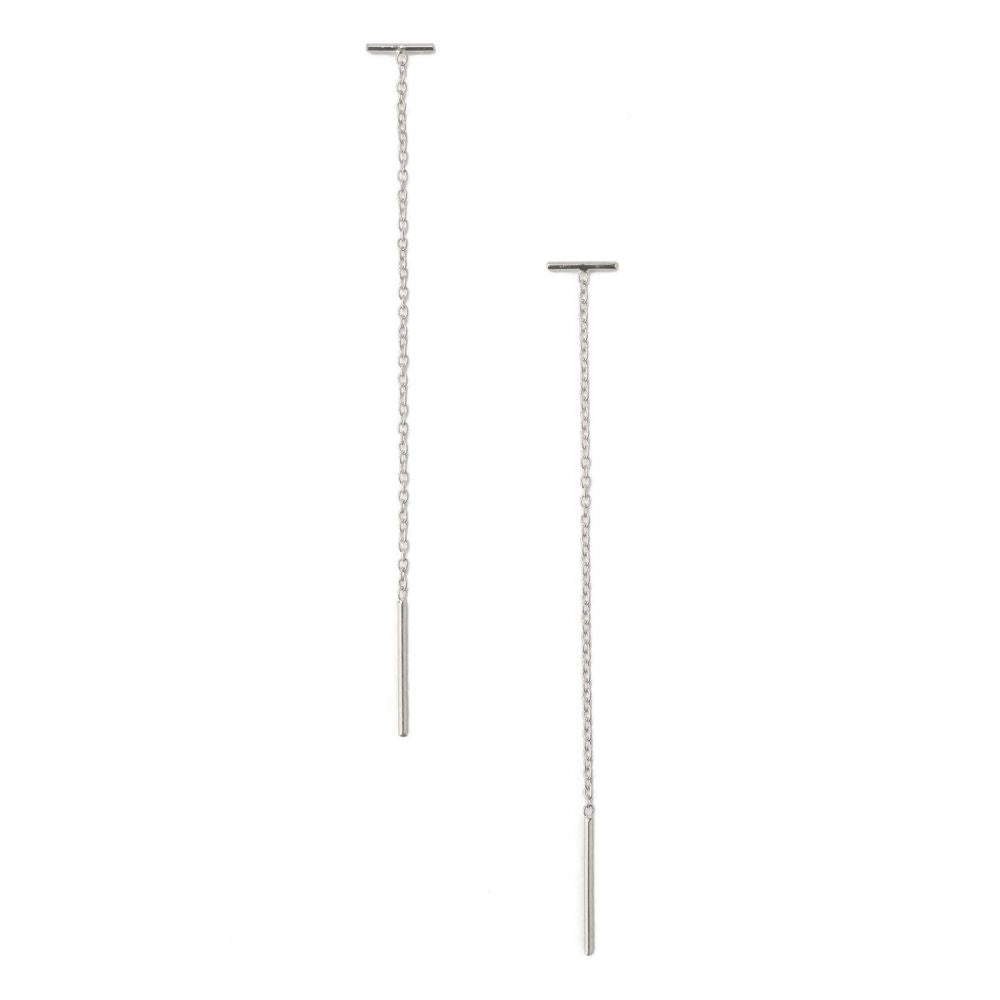 These elegant handmade earrings from Chan Luu feature a sterling silver chain and bar pendant handmade in the United States.