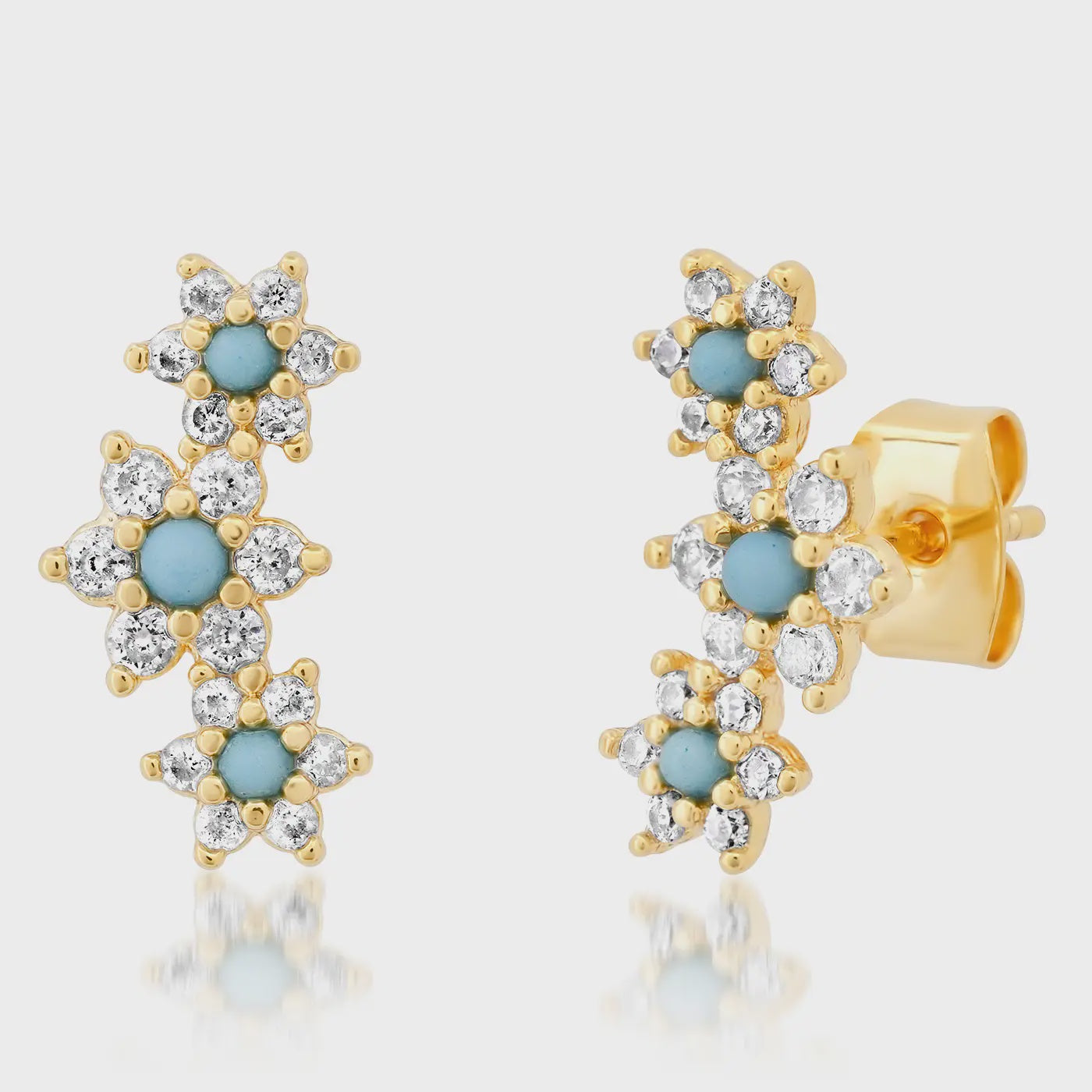 Three Flower Ear Climber with Turquoise Accents