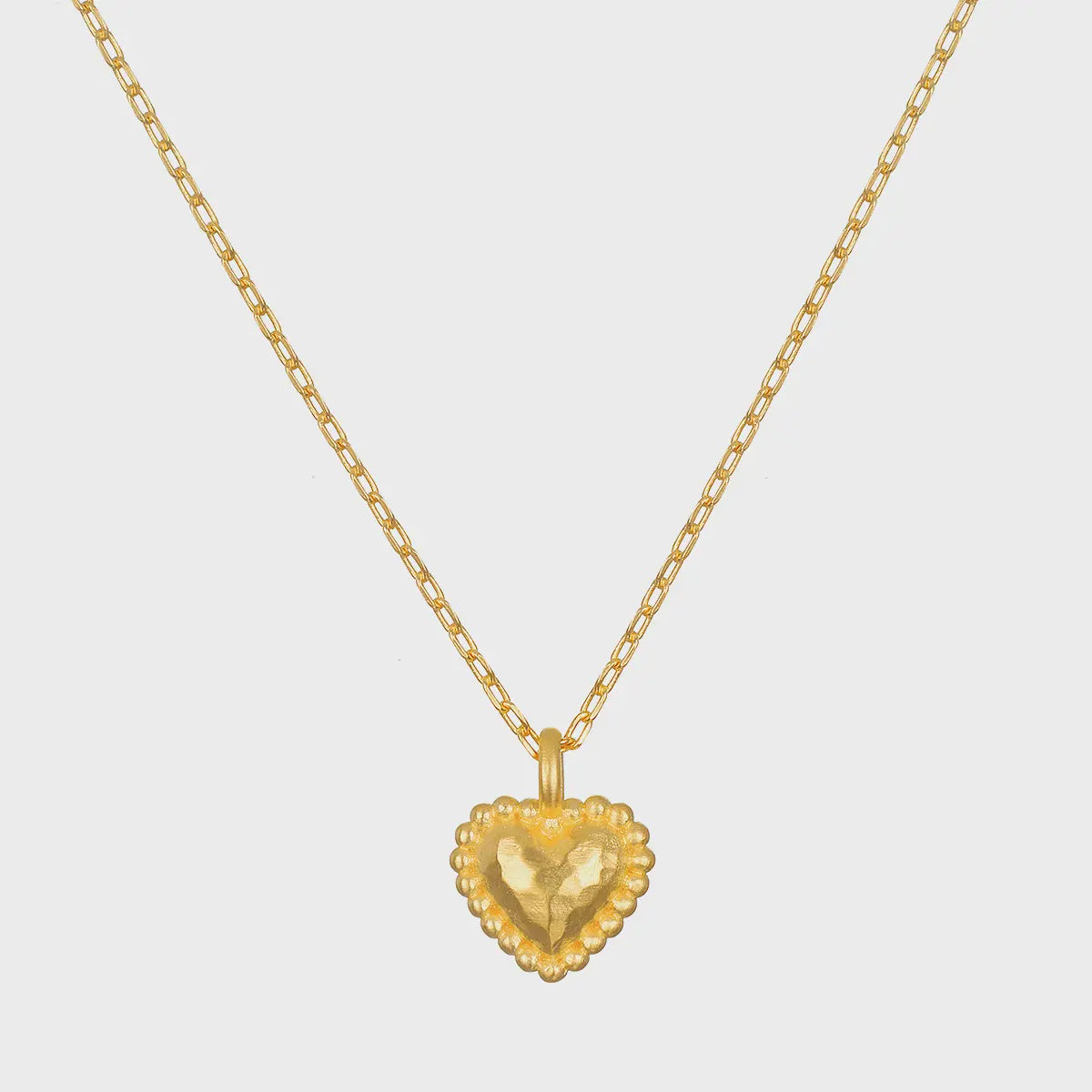 An 18K-hammered-gold plated heart is accented with delicate dots to create a pendant necklace as pretty as it is meaningful. The symbol of a true heart, it reminds us to speak with love, to act with love and to live in love every day.