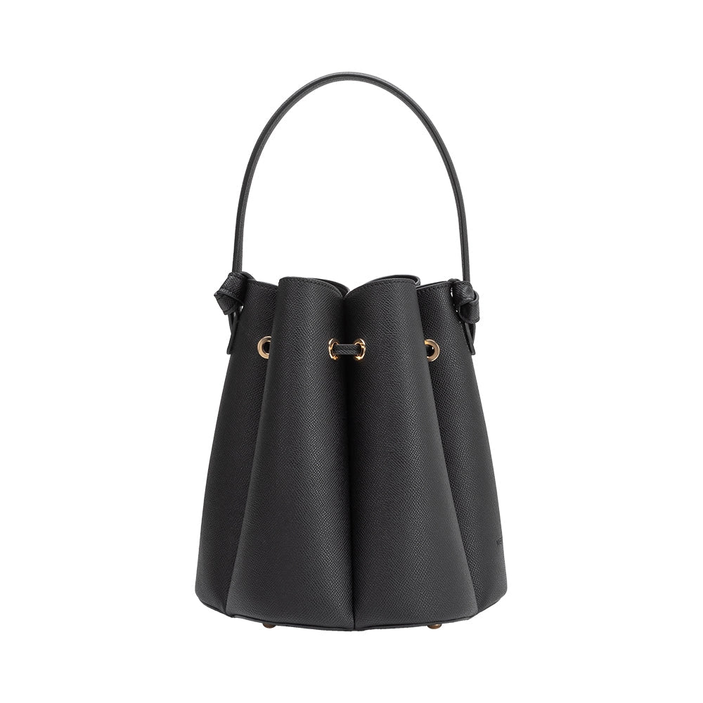 Designed with fluted, pleated panels and a flower-shaped base, the Laguna top handle purse from Melie Bianco can be worn across the body, on the shoulder, or carried by hand. It's accented with gold-toned hardware. Designed to take you from day to night, It's finished in a sturdy, textured recycled vegan leather reminiscent of saffiano, and self-lined with nested feet.