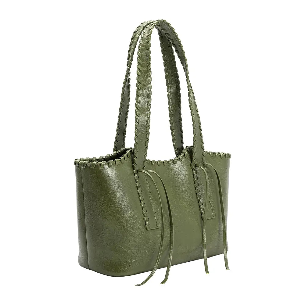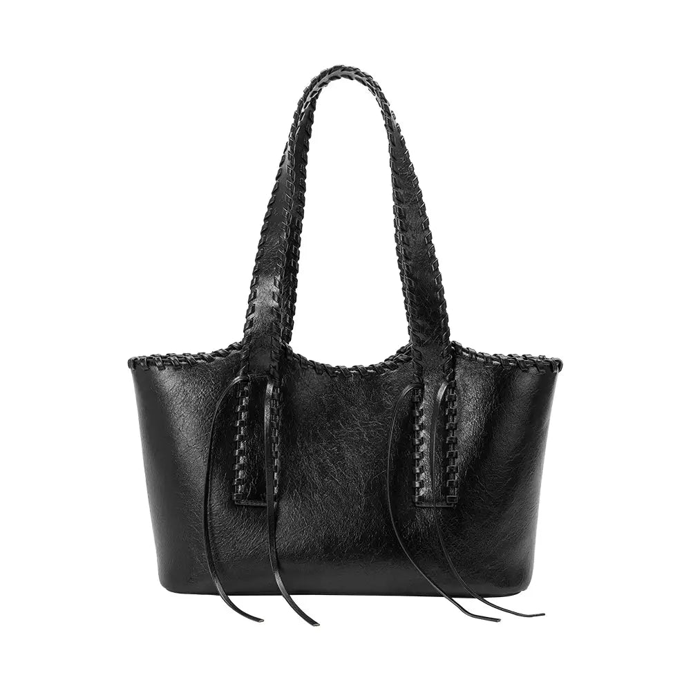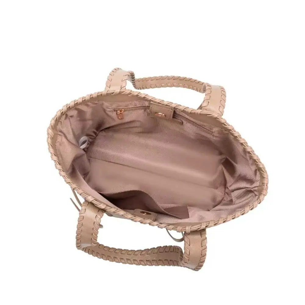 Durable whipstitch on its shoulder straps, providing both style and enhanced durability to the Phoebe recycled vegan shoulder bag from Melie Bianco. The crinkly, shiny material adds a unique texture and aesthetic appeal. It's a feminine upgrade to your everyday shoulder tote.