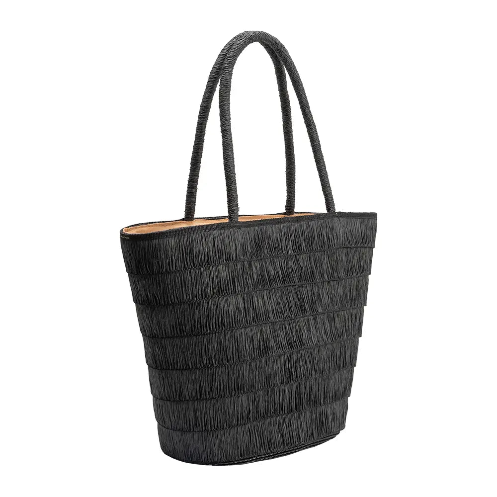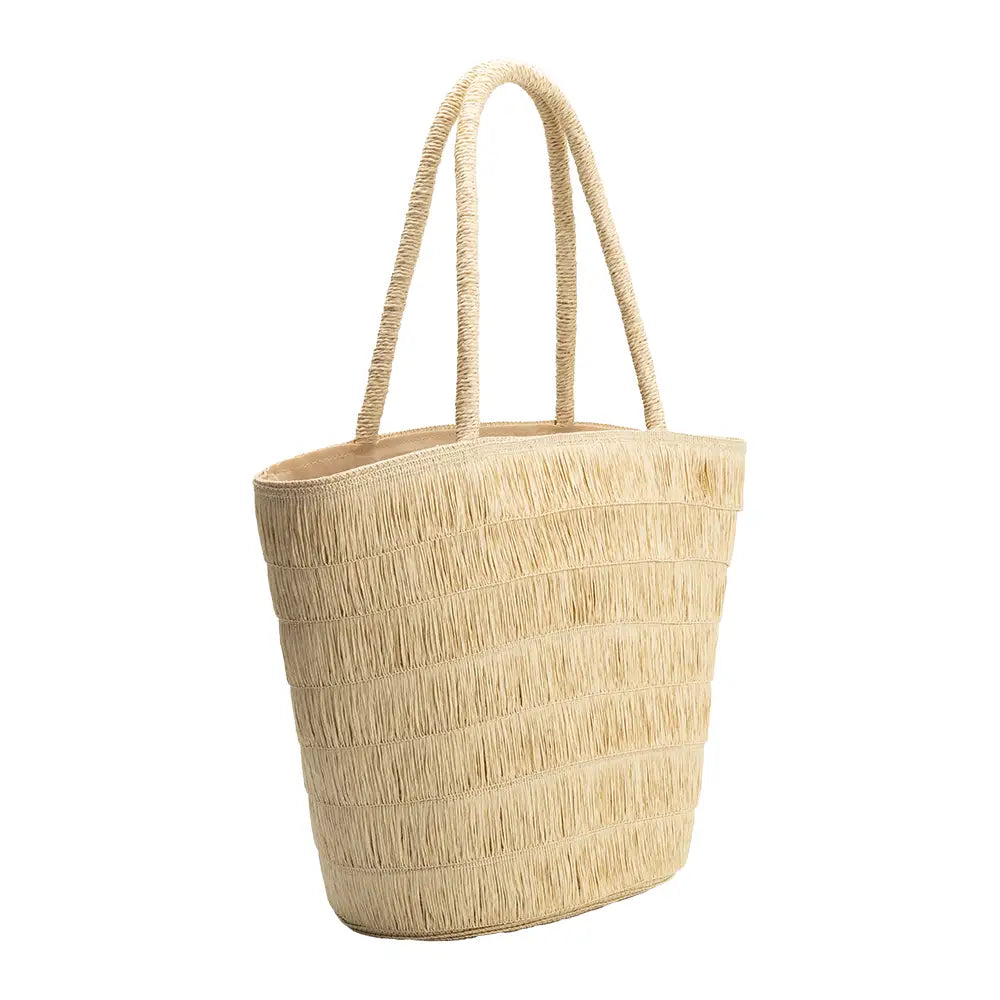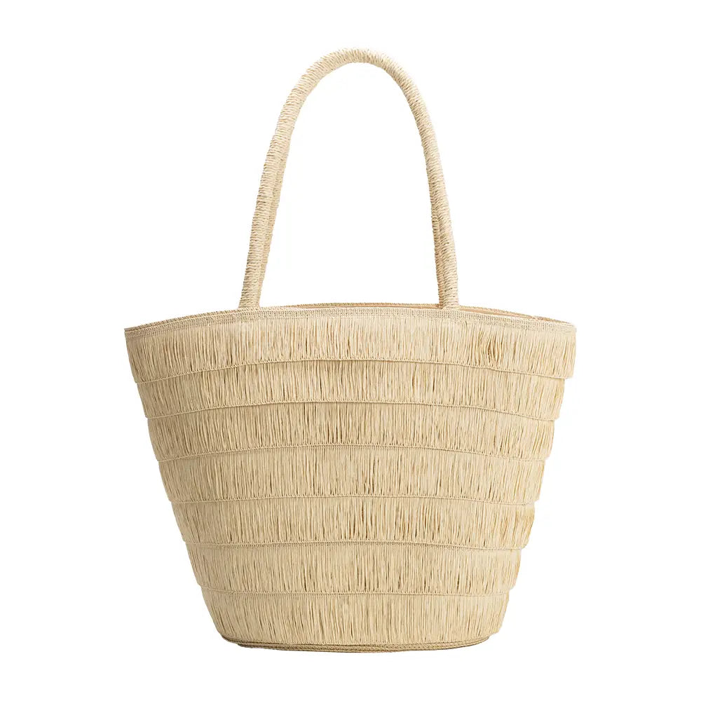 The Sandy straw vegan tote from Melie Bianco has sturdy double handles and lots of room to store essentials, whether you're headed to the beach, shops or everyday ease. The spacious main compartment has an interior slip pocket to keep essentials organized, and a zipper closure keeps belongings tucked in.