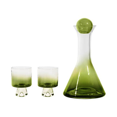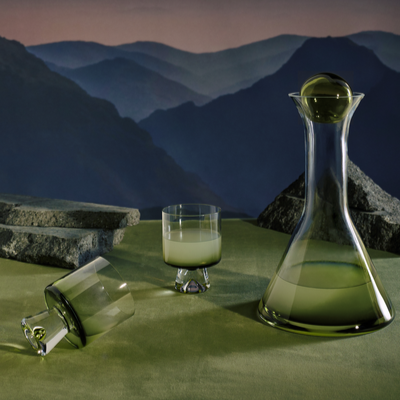 Tank is a series of drinking vessels constructed using the simplest geometric language of spheres cones and cylinders. Their pared back aesthetic and solid glass stem as counterweight give them an instantly recognisable and minimal silhouette. Emerald green is associated with all things positive: health and growth, calm, vitality and nature. Pour your favorite bottle of red into the decanter to let it air before serving.