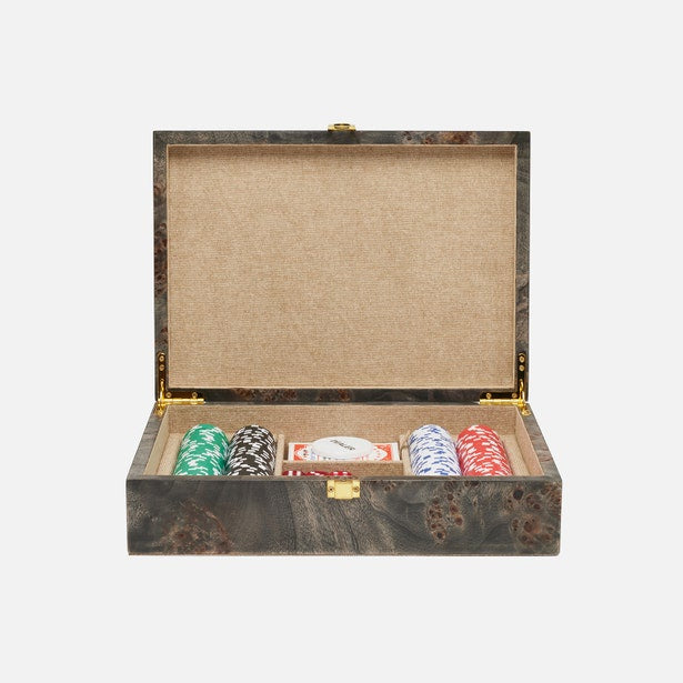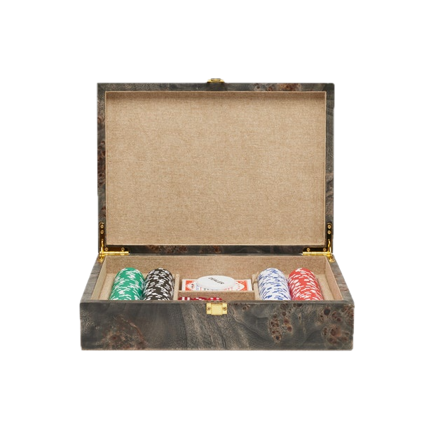 Experience the elegance of this exquisite Windsor poker set, expertly crafted from luxurious burl veneer.