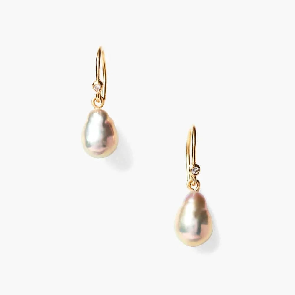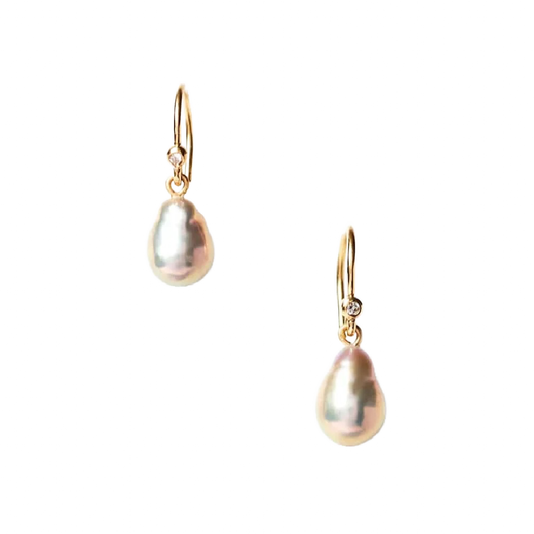 Chan Luu designs this 14k gold drop earring with freshwater pearl and white diamond inlay on a French hook.