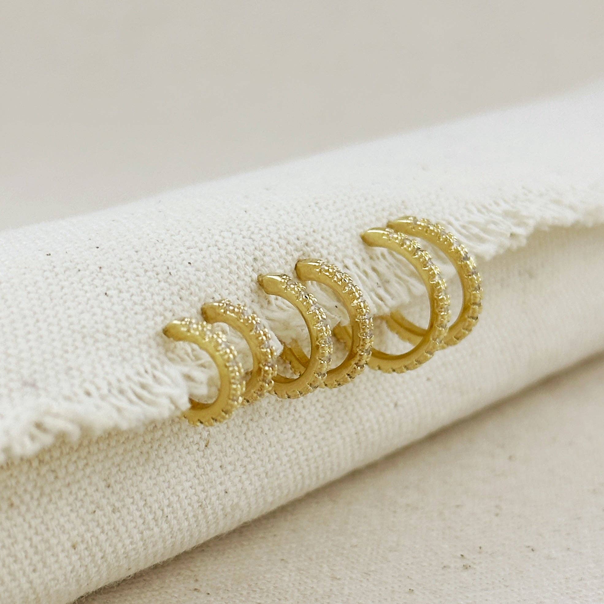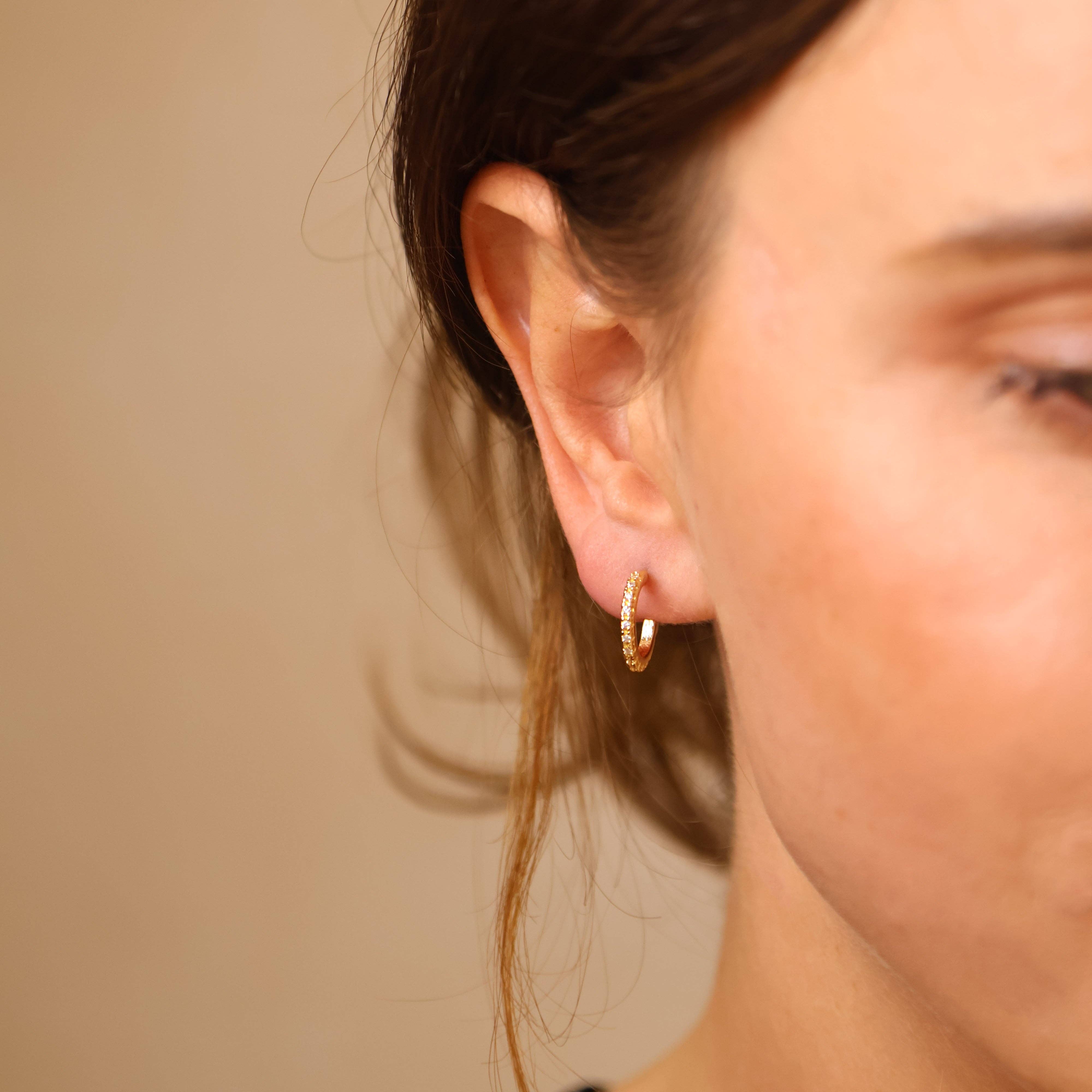 These sparkling semi-hoops feature one thin row of cubic zirconia stones. Add a bit of glamour and style to the every day.