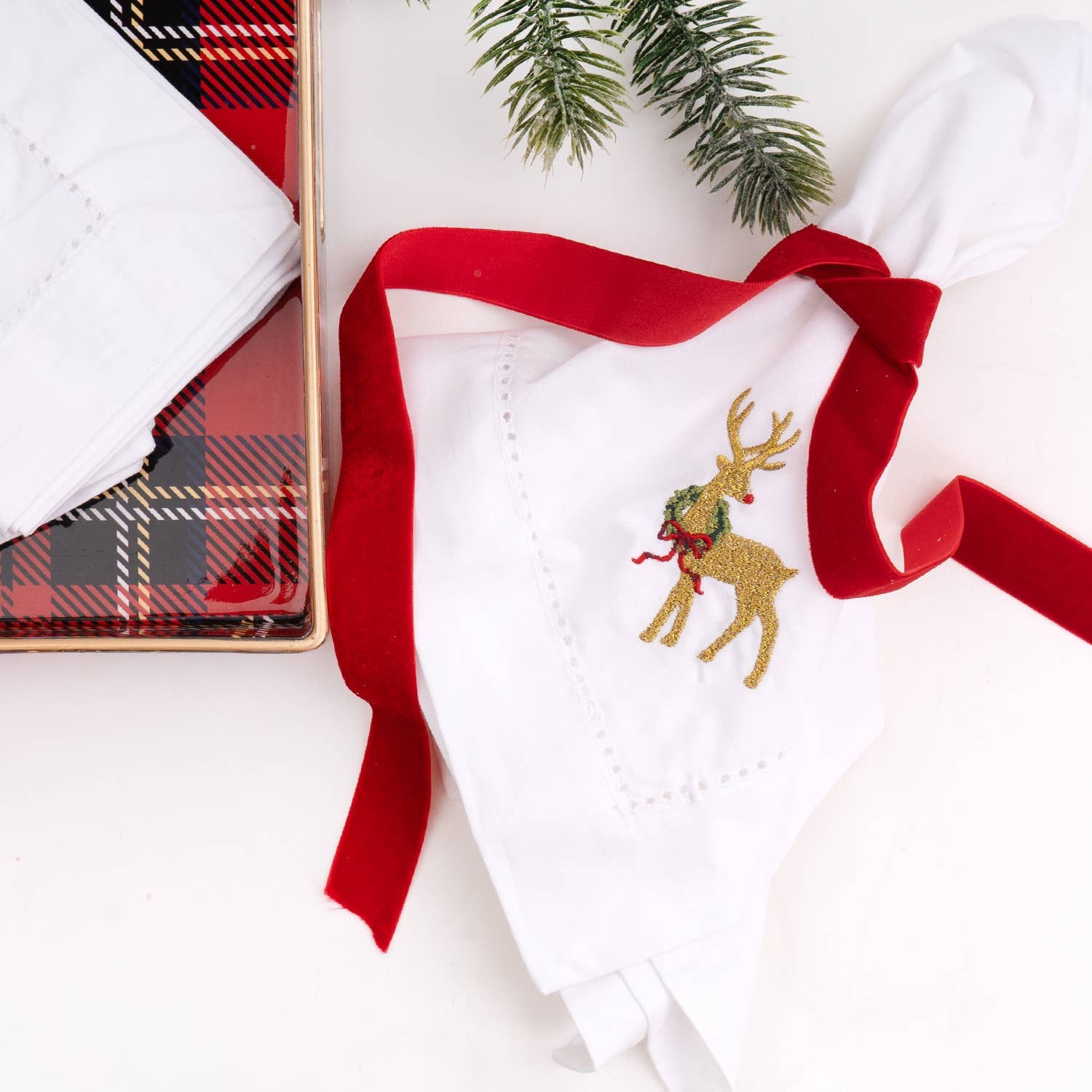 Reindeer Embroidered Dinner Napkins, Set of 4