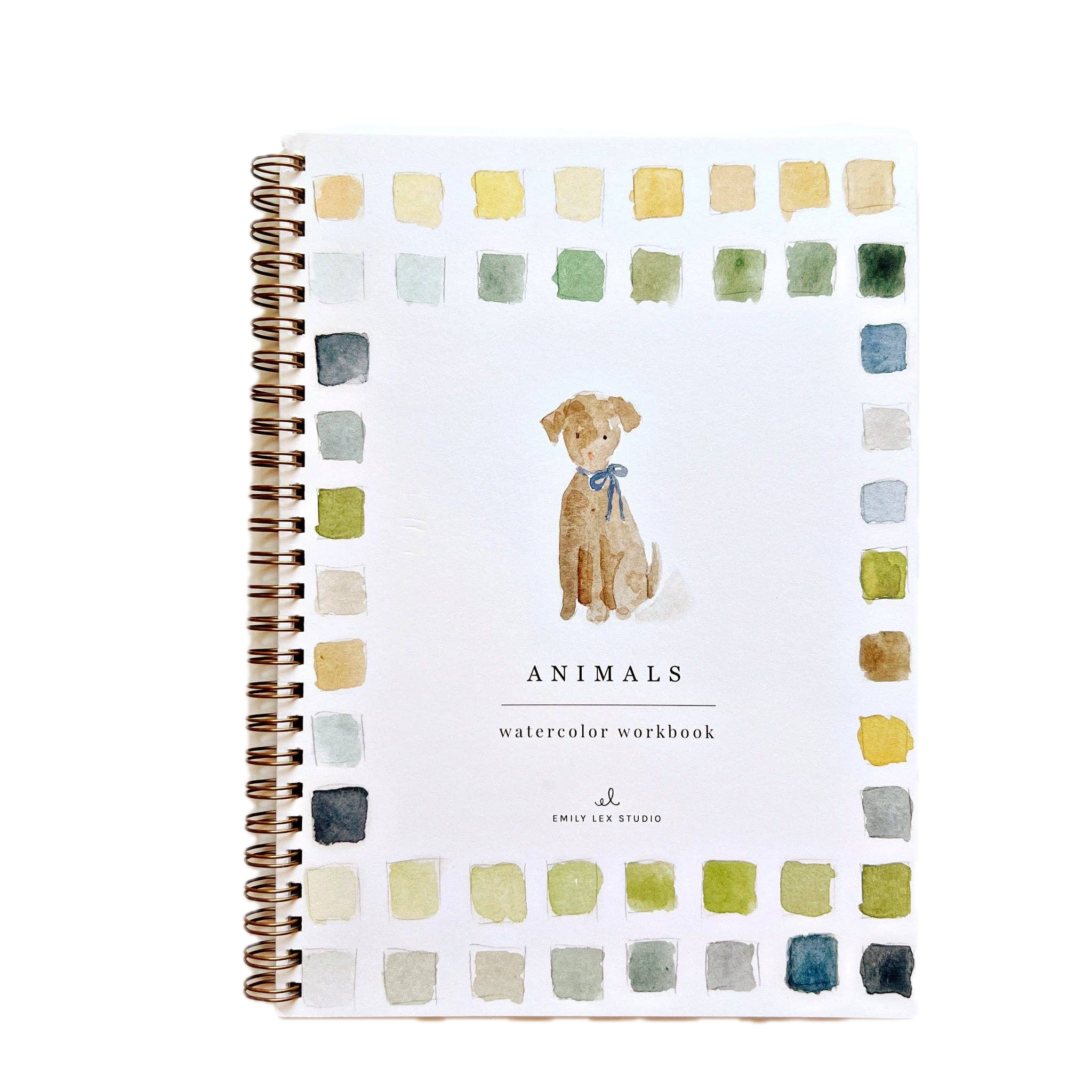 Featuring watercolor paper and two new illustrations, the Animals Watercolor Workbook features original artwork from Emily Lex Studio, including 12 animal illustrations with an example of the finished painting, step-by-step instructions, and a lightly illustrated sketch for you to paint. It's just like a coloring book, but with watercolor. The lay-flat pages and easy tear-out spiral binding make it easy to work in. It's perfect for blossoming artists of any age.