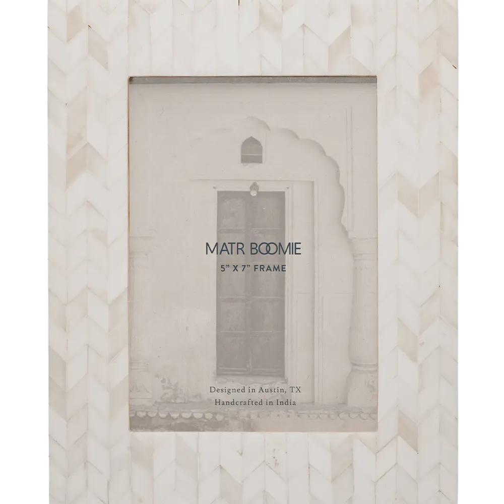 Made of beautiful, cruelty free and ethically sourced bone in a mosaic chevron pattern, this frame provides a lovely way to display your favorite photos. The frame is the perfect gift for special occasions where memories are created, such as birthdays, housewarmings, weddings and anniversaries. All of Matr Boomie's collection is handmade, fair trade and sustainable.