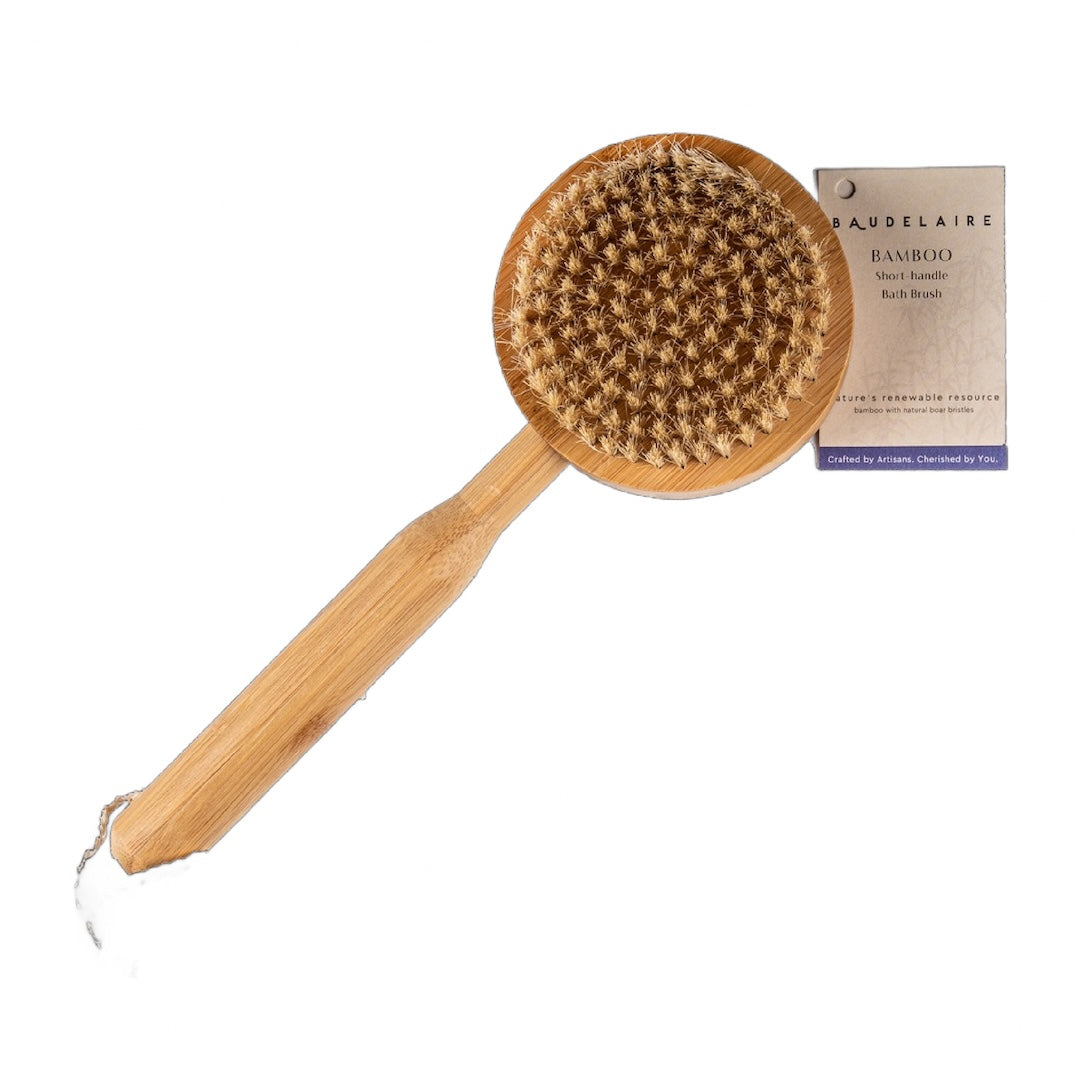 The perfect marriage between form and function, the bamboo brush series from Baudelaire is as practical as it is beautiful. Artisan crafted from durable and eco-friendly bamboo, this bath brush has natural boar-bristles to gently loosen and remove dirt and dead skin cells, leaving a bright and healthy glow. The short handle makes it easy to maneuver in tight spaces.
