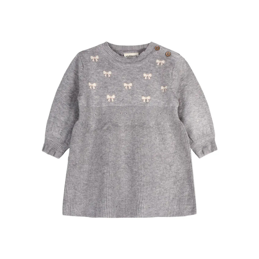 Emma Bow Balloon Sleeve Sweater Knit Baby Dress - Organic Heather Grey