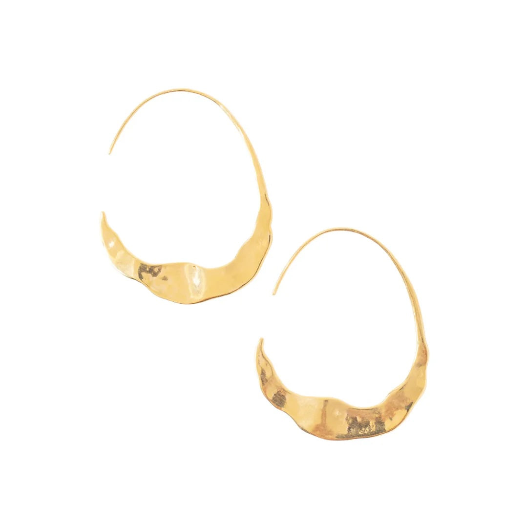 These 18k gold-plated sterling silver free-form hoop earrings from Chan Luu are hand-hammered into crescent moons by artisan makers in Vietnam for a unique twist on a classic look.
