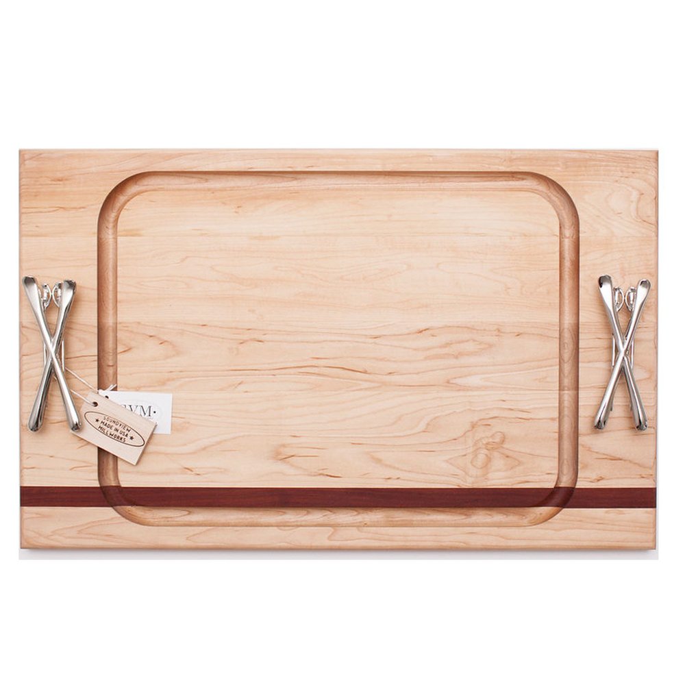 These steak boards feature two chrome-plated brass ski handles, an ample 3/4-inch juice groove, and Soundview Millworks' signature maple and mahogany design. Share your passions for grilling and skiing at your next party.