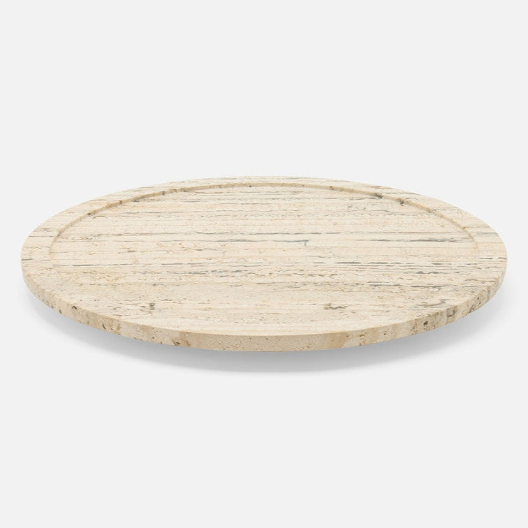 Blue Pheasant's silver travertine lazy Susan is handmade with natural variation so each one is unique. The 18-inch diameter means you can easily fit sides and condiments for easy access when entertaining.