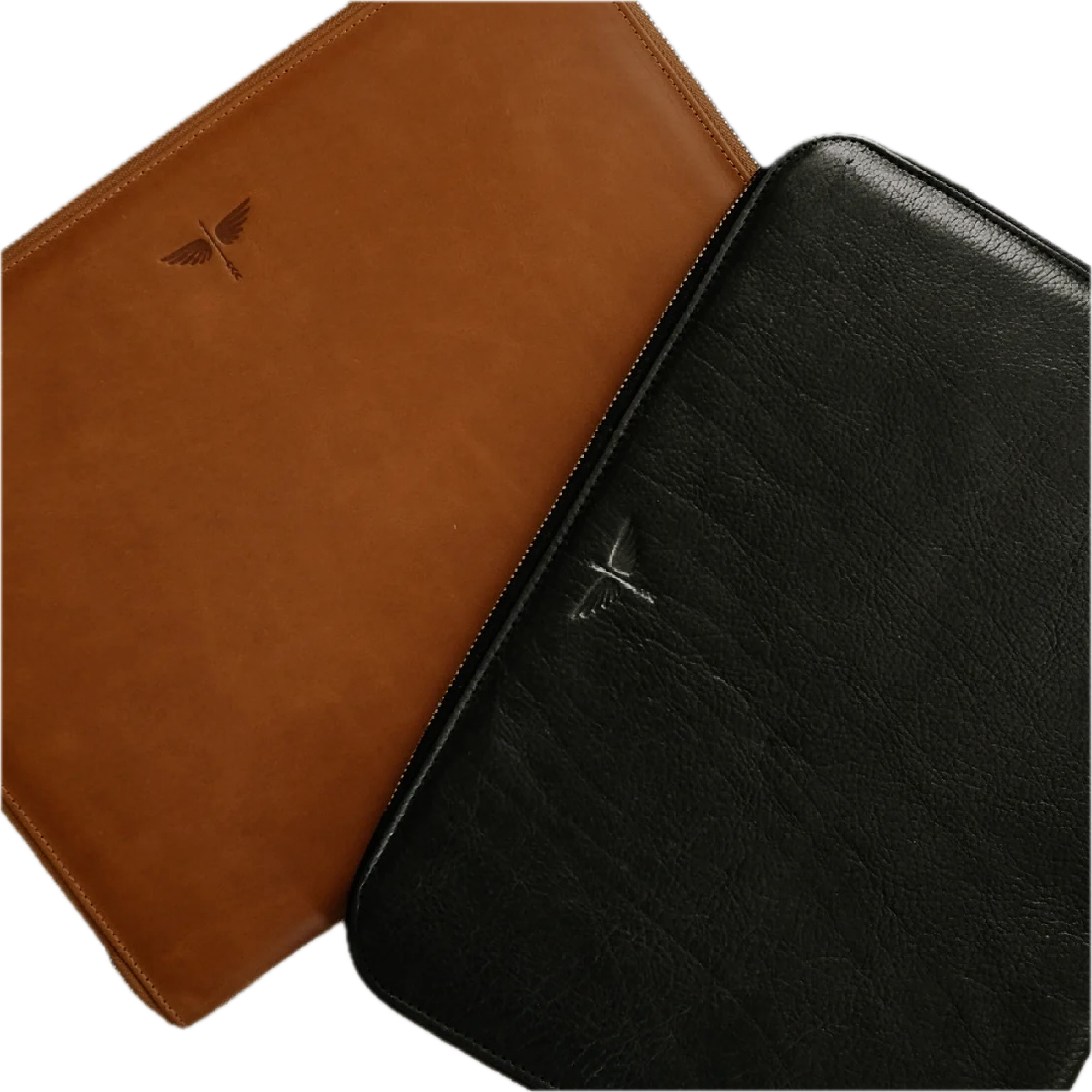 This leather laptop case from Clhei has a classic design with six document pockets and subtle padding to protect your laptop. It's designed to fit 13-inch and 14-inch laptops. This leather case is done in cognac with bronze hardware.