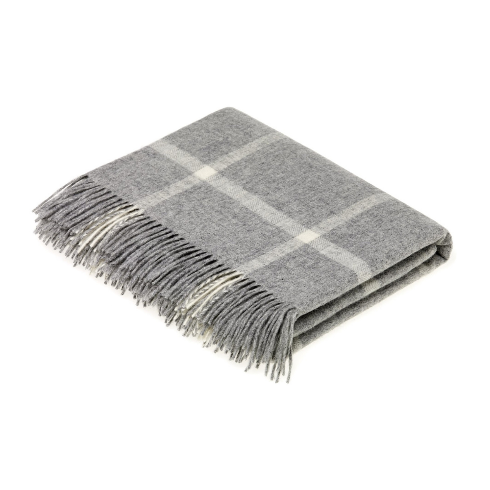 The windowpane pattern on this Merino lambswool throw blanket might be beige but it's certainly not vanilla. Made of the finest lambswool, this luxurious and super-soft throw is an elegant and cozy edition to your home, whether it's a country estate or a chic urban townhouse. The neutral windowpane design is timeless and transitional, and the fringe detail is on trend among top designers on both sides of the pond.