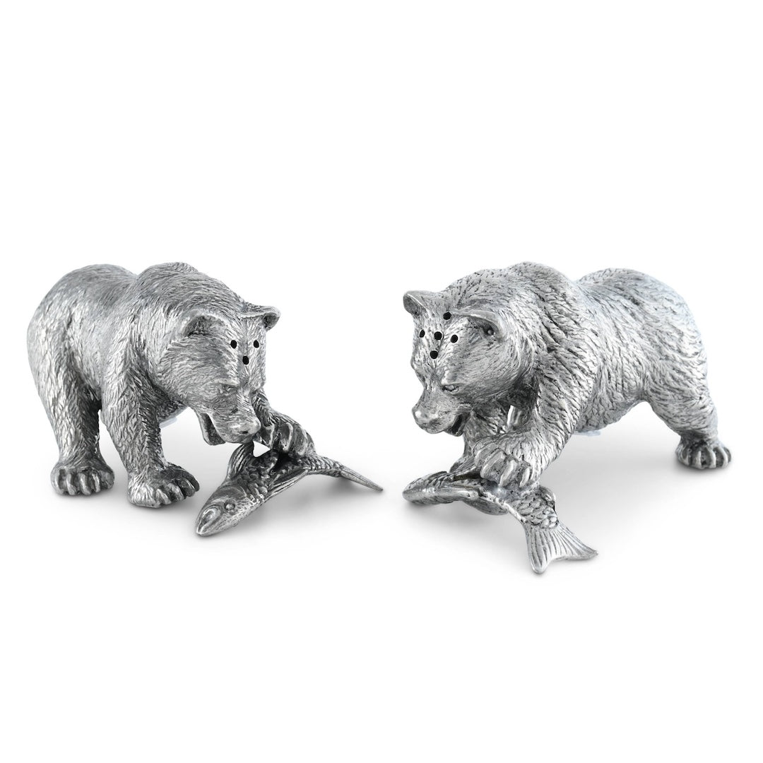 The extraordinary detail in our fishing bears pewter salt and pepper set is due to the amazing versatility of Vagabond House pewter. Created with cast, hand-finished pewter, this set is a captivating example of the artisanship of our designers. Perfect for entertaining in your home, they also make fine host/hostess gifts for people who love bears and wildlife and like to express their passion when entertaining.