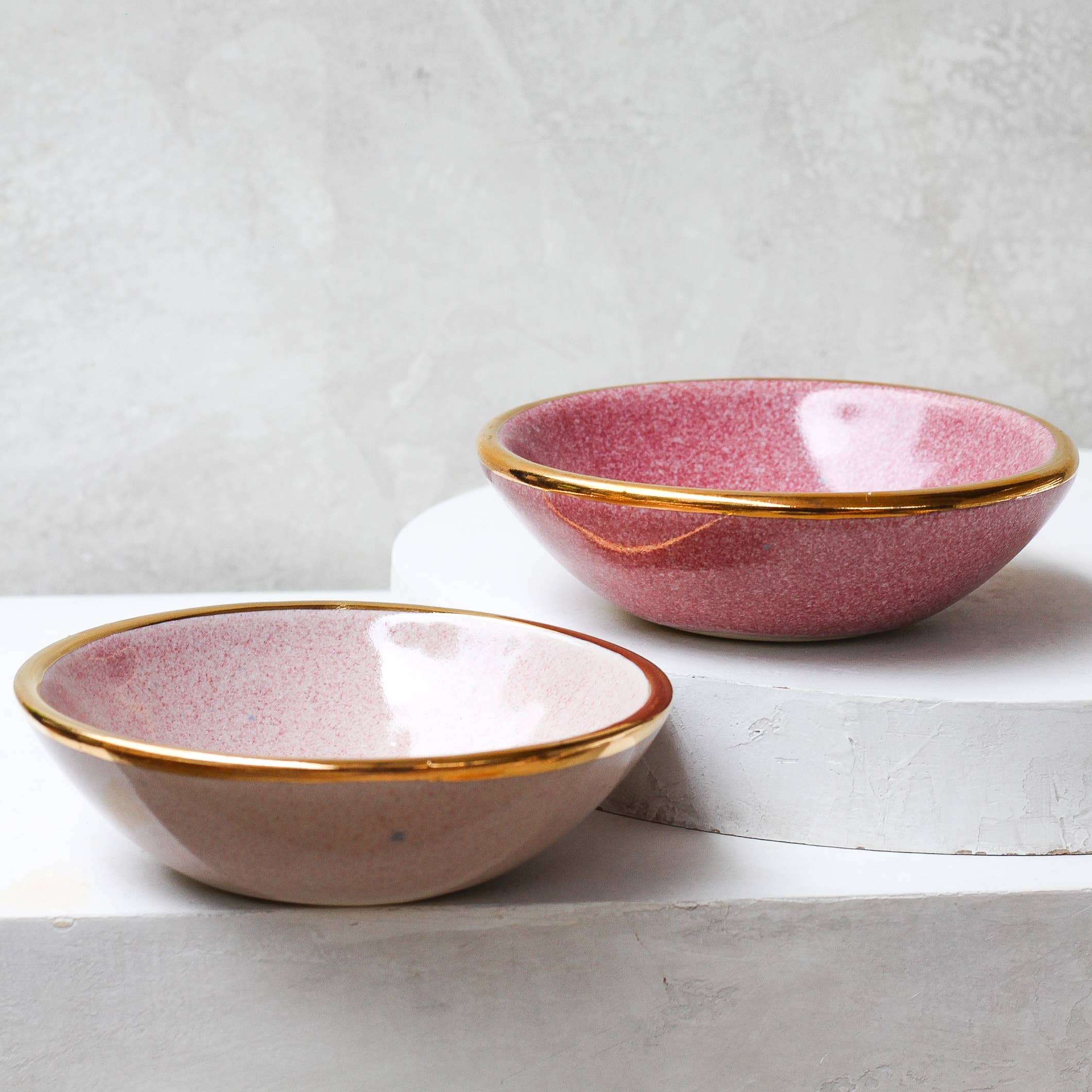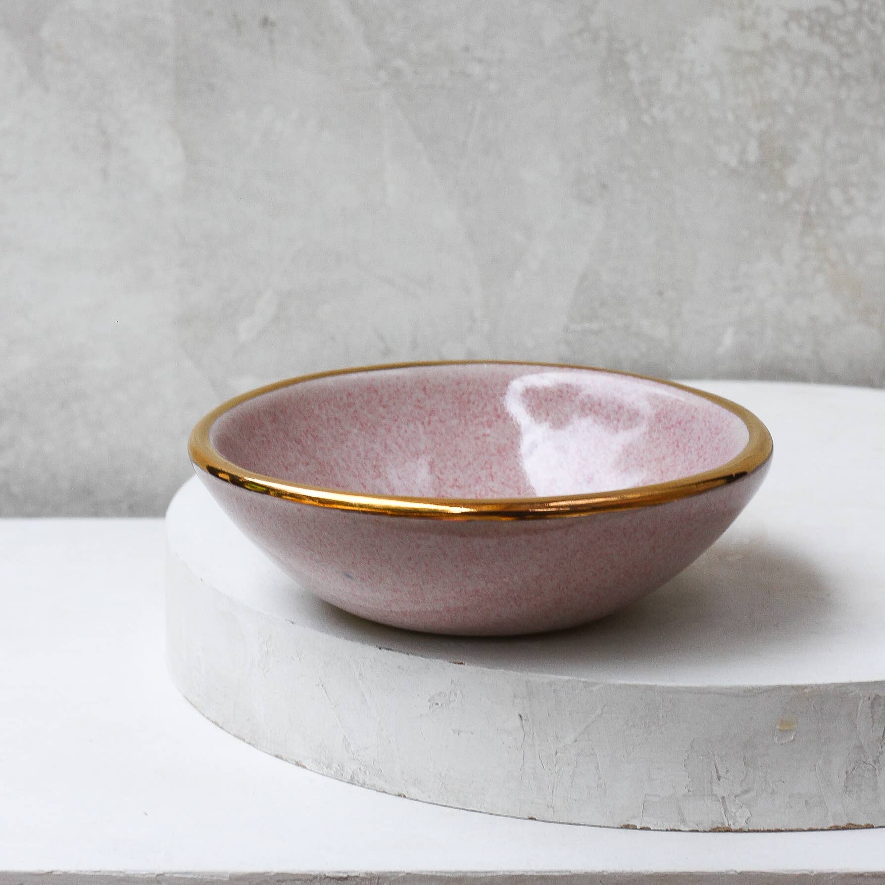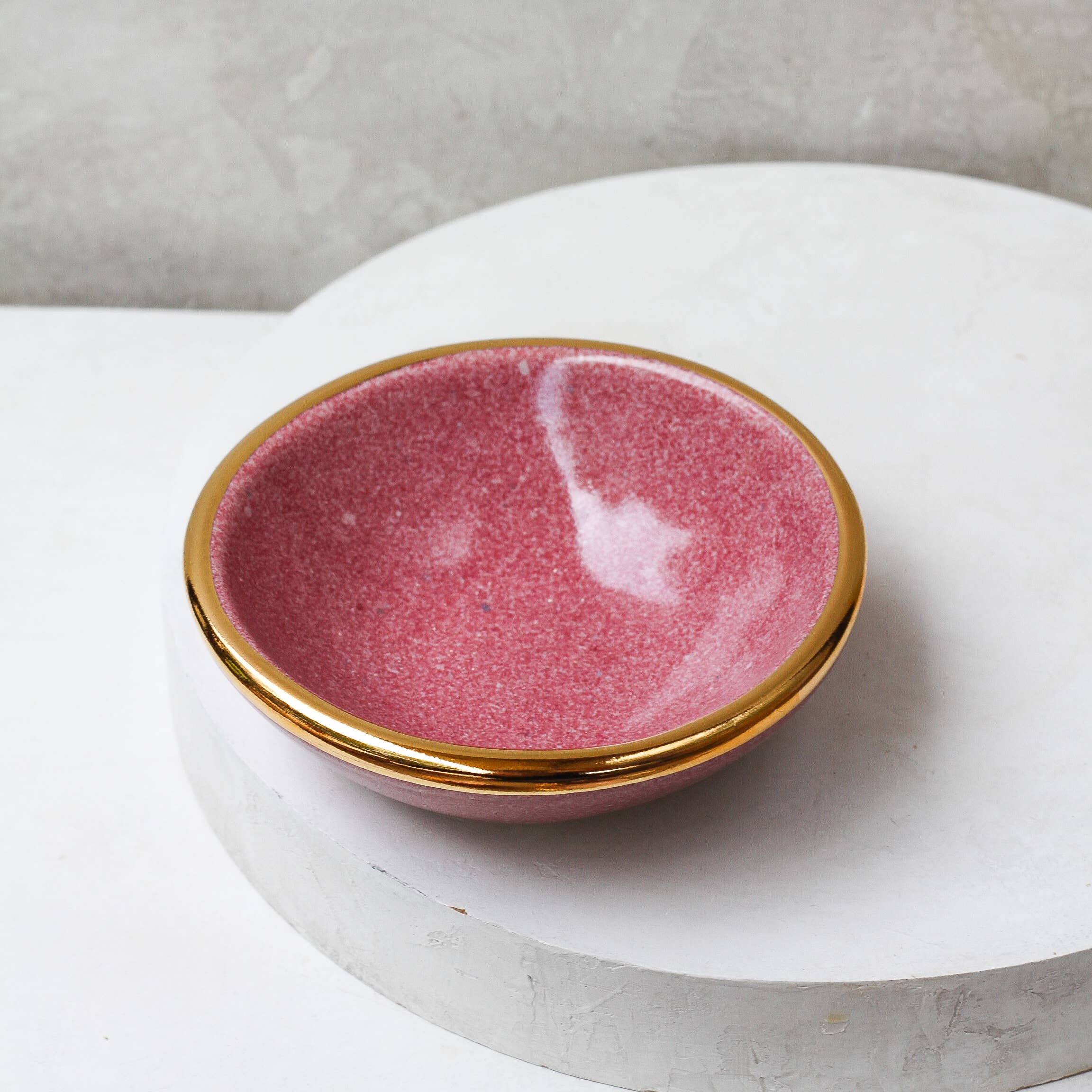 Pink Ring Bowl | Handmade Porcelain Trinket Bowl with Gold