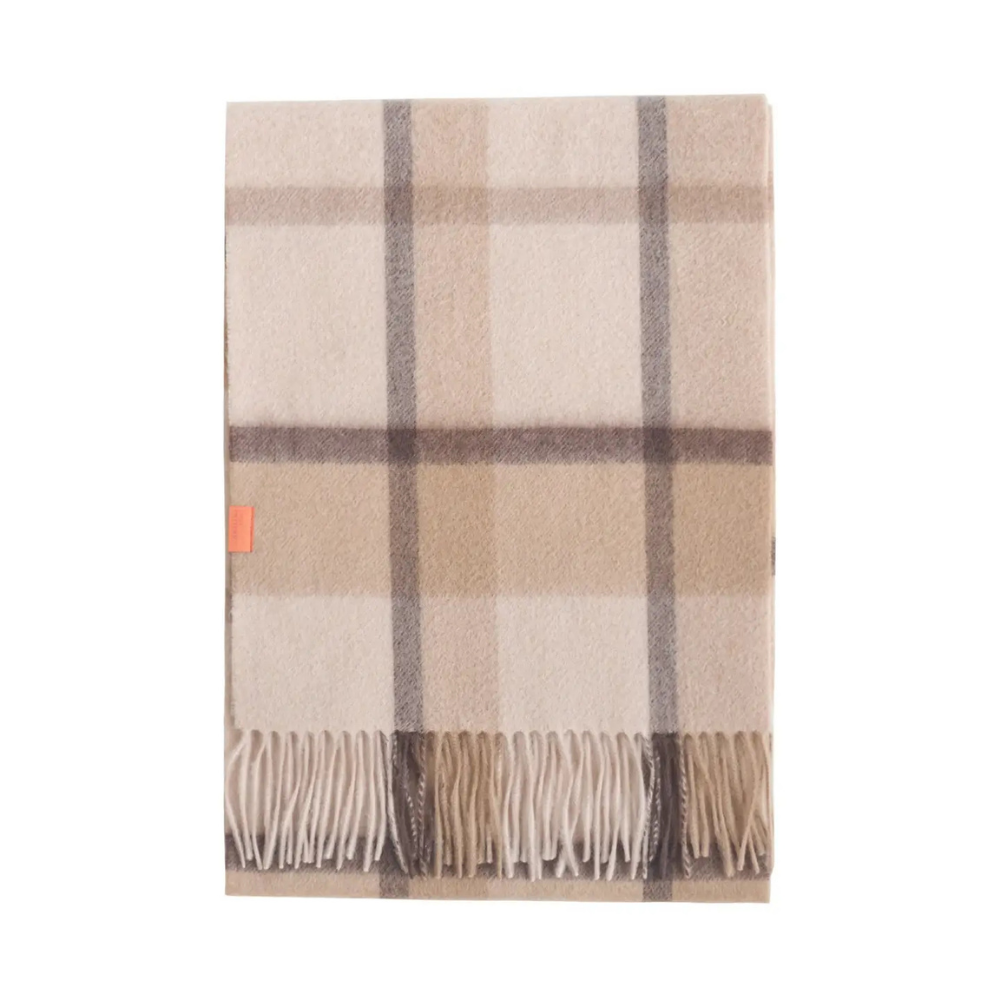 Lost Pattern's plaid cashmere scarf in pink and blue adds a dose of elegance and a bit of warmth to your everyday look. Woven with 100% pure cashmere from Mongolia, it has a soft fringe detail on both sides.