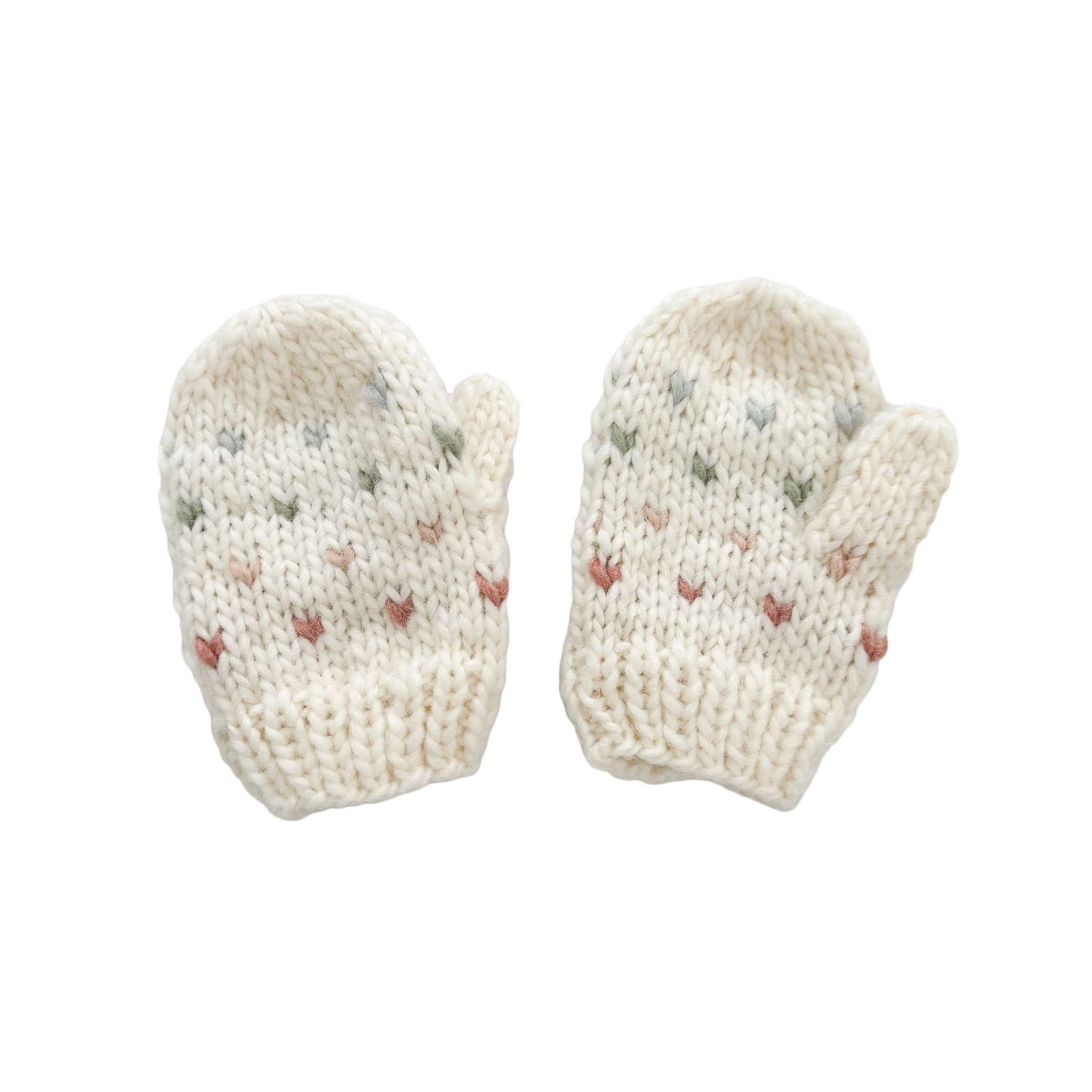 Featuring tiny hearts in Blush, Rose, Bowie Grey and Mist on a gentle Cream base. Don't forget the matching cardigan and hat.