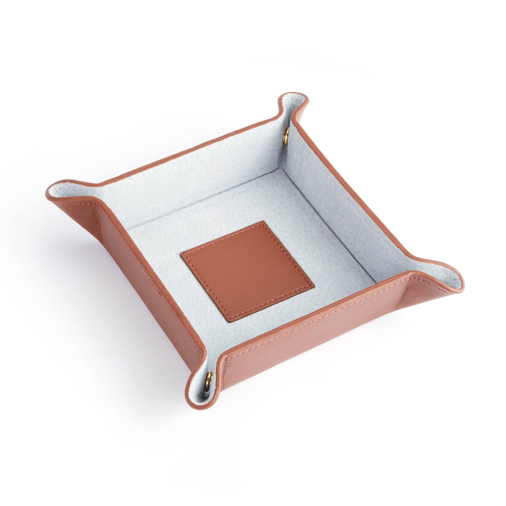 Both a practical travel accompaniment and a convenient home or office accessory, this flat folding leather valet tray is handcrafted with a leather exterior exquisitely juxtaposed with a sophisticated suede interior to ensure delicate items are not scratched. The four corner snaps enable easy fold up during travel.