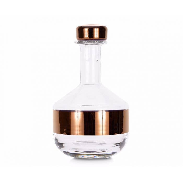 Tom Dixon's Tank whiskey decanter is designed with mouth-blown glass and ornamented with hand-painted copper detailing. It's presented in gift-worthy packaging.